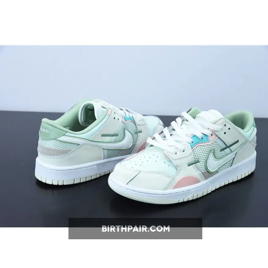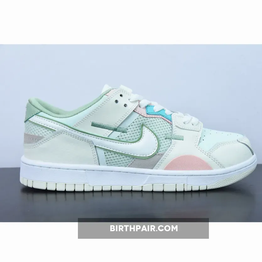 Covered in a color makeup of Grey Haze/Phantom-Light Bone-Oil Green, this deconstructed iteration of the Nike Dunk Low gets covered in a mix of mesh and leathers all throughout the upper for a unique look in mostly grey and white. Some pastel greens and pinks are sprinkled throughout the upper for a pop of colors while a white rubber midsole and Phantom rubber outsole finish things off on this Nike Dunk Low Scrap