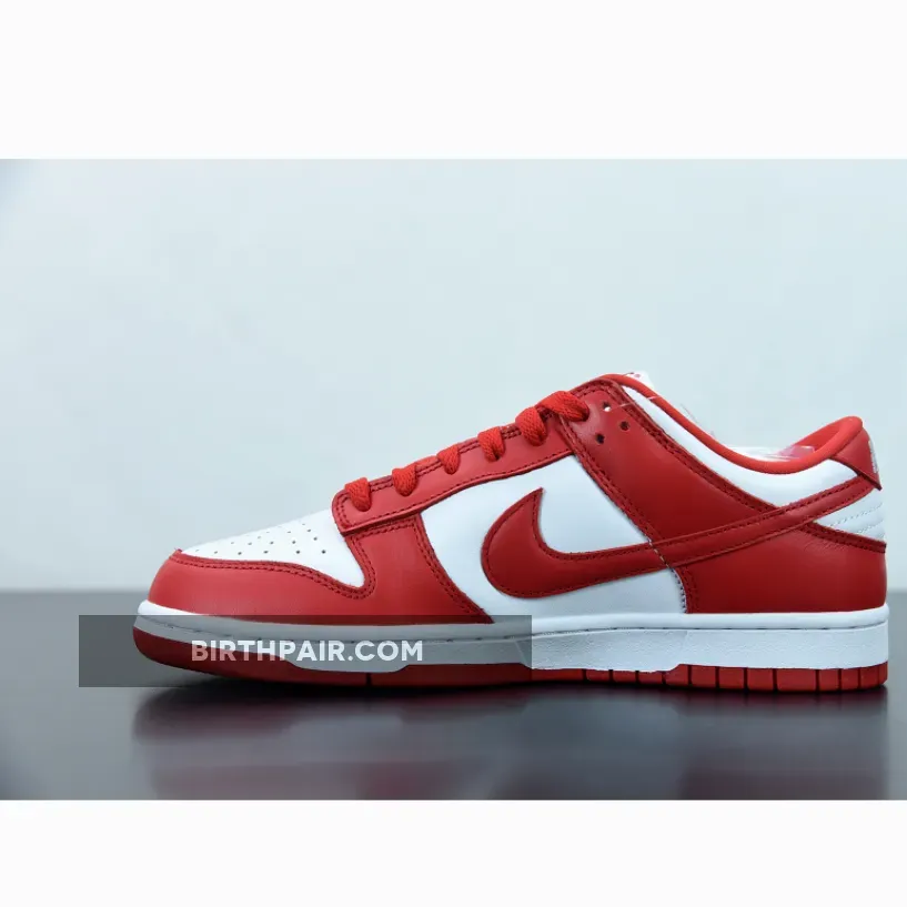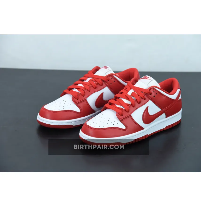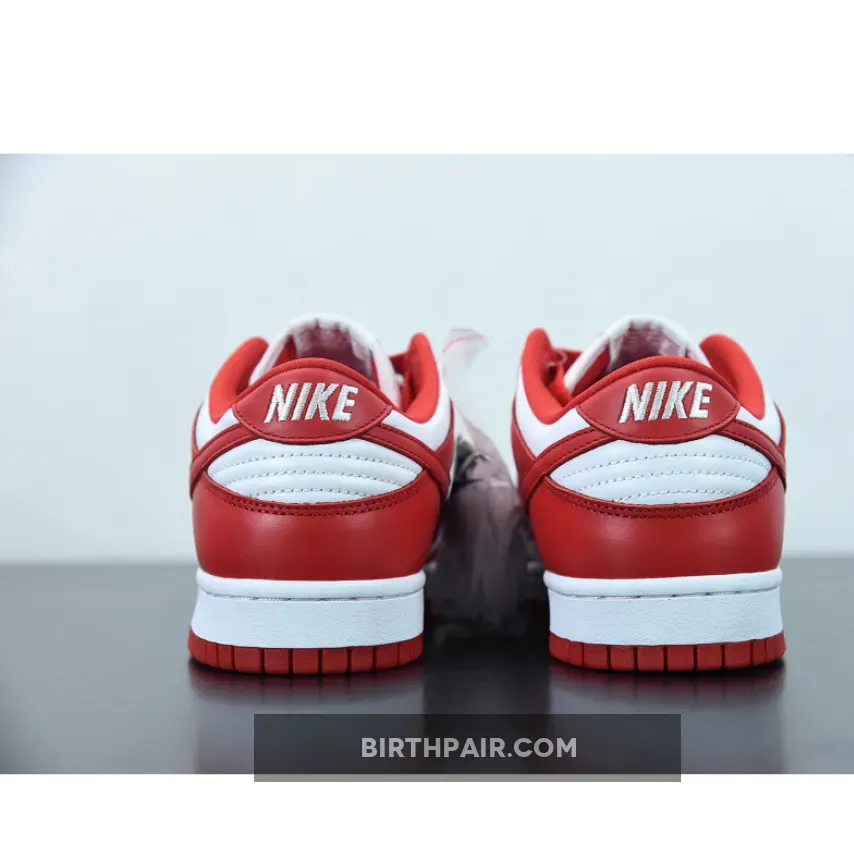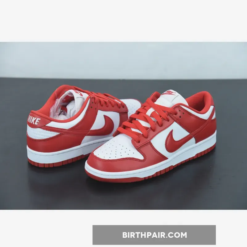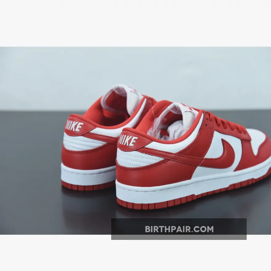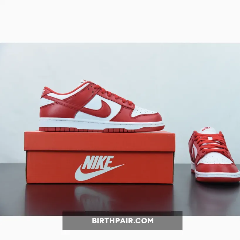 One of the pairs that will be releasing is this upcoming offering dressed in a White and University Red color scheme. This Nike Dunk Low looks similar to 2005’s “St.