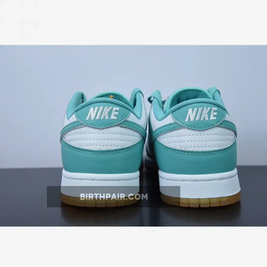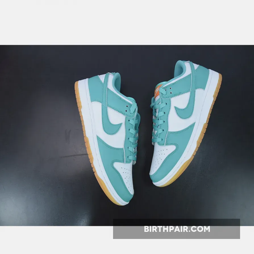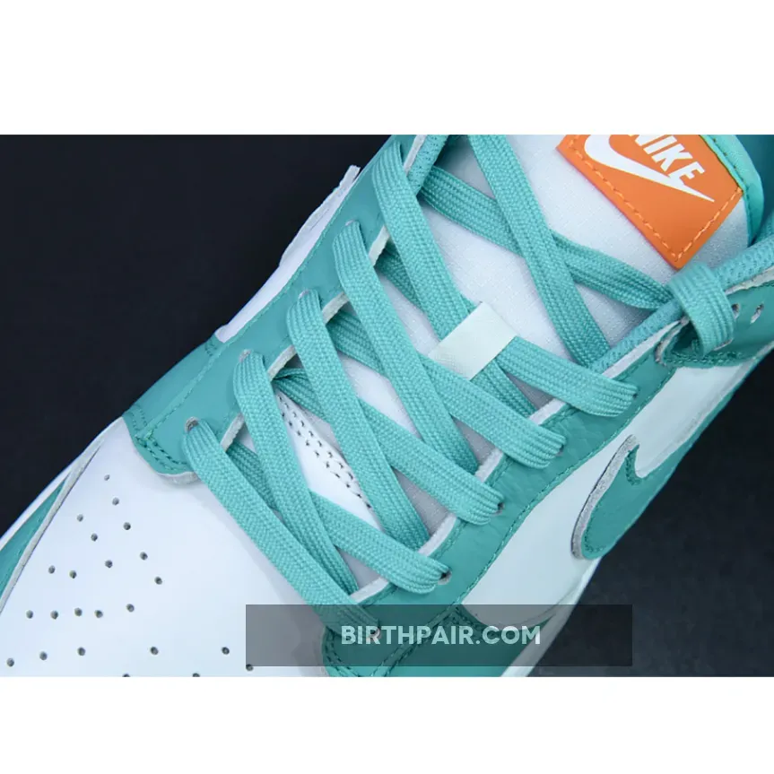 The Nike Dunk Low prepares for hotter weather with a splash of cool “Turquoise Green” and a dash of citrusy “Orange”. Check out the Nike Dunk Low Turquoise Green Orange.Calling to mind tropical scenes and beach vibes, this Dunk Low sports a clean white base overlaid with easy-on-the-eyes Turquoise Green tumbled leather, matching the laces, the mesh sockliner and the tongue lining. A lively pop of orange comes in the form of the tongue tab with white Nike branding. This pair is a perfect staple for your travel gear.