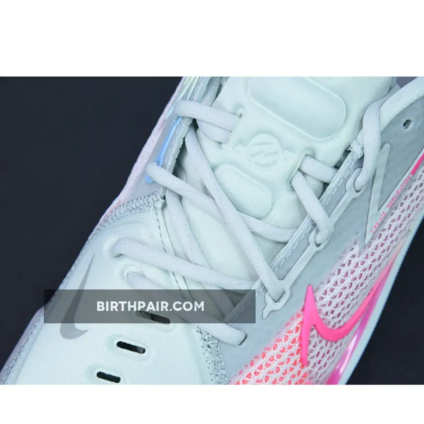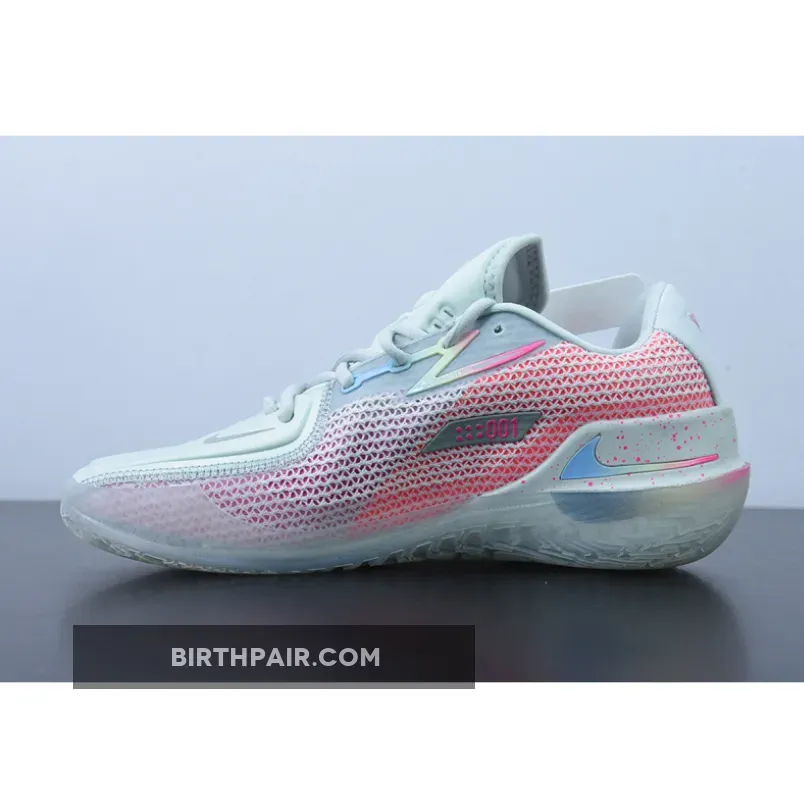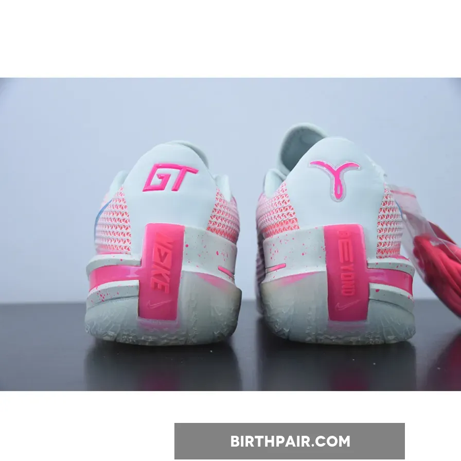 This new colorway of the current-gen Nike Zoom GT Cut is colored in white and pink, with the Swoosh on the lateral and medial sporting a soft pastel gradient of pink, yellow, and soft purple. The Kay Yow logo proudly appears on the right heel of the shoes, while speckle patterns cover the entirety of the midsole.