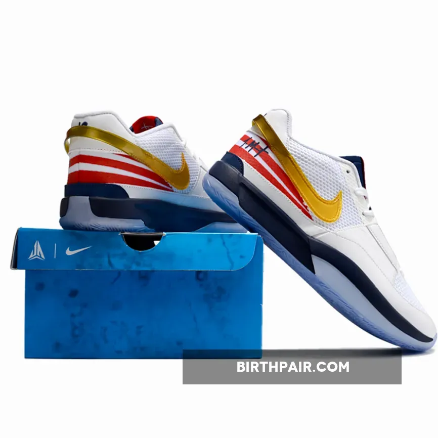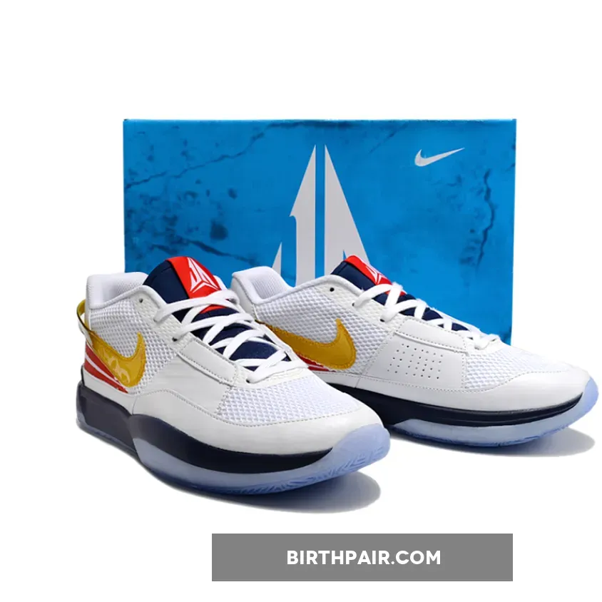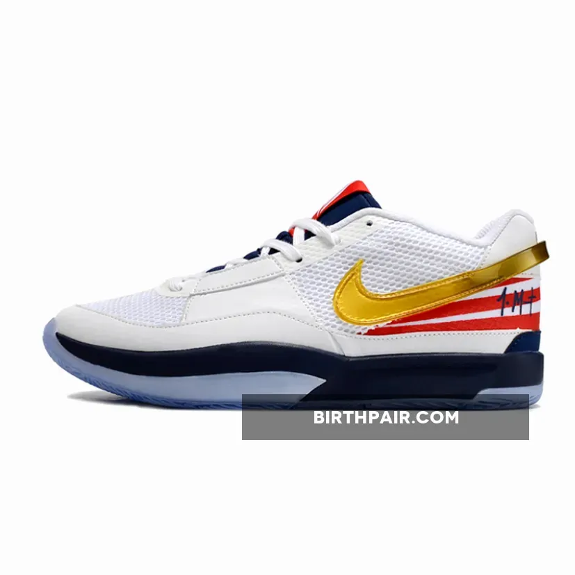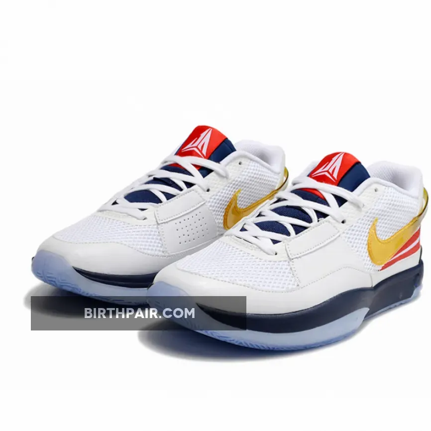white and navy nike #nike ja 1 chimney #ja 1 12am #ja 1 eybl #navy and gold nikes #nike ja one #ja one chimney,