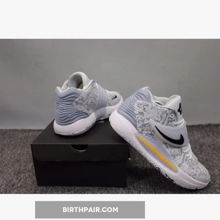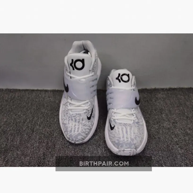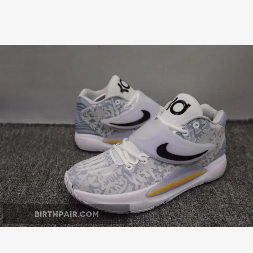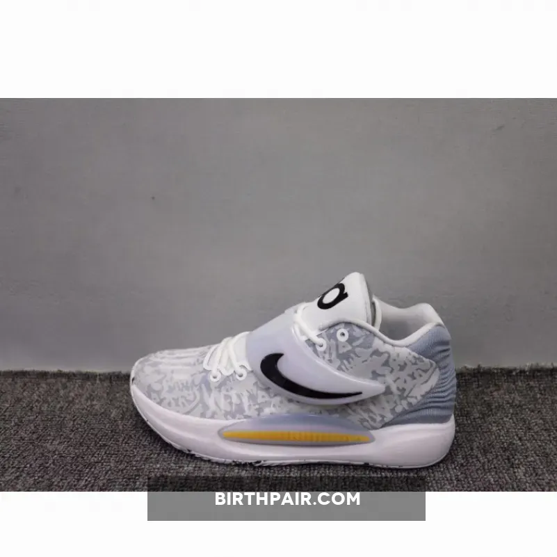 This Nike KD 14 features a clean White and Black color combination. Constructed with White multilayer mesh on the upper along with a translucent midfoot strap. Next, Black appears on the branding while full-length Zoom Air cushioning and Cushlon foam provide for comfort. Lastly, a mixture of White and Grey that forms a marbleized look to finish the look.