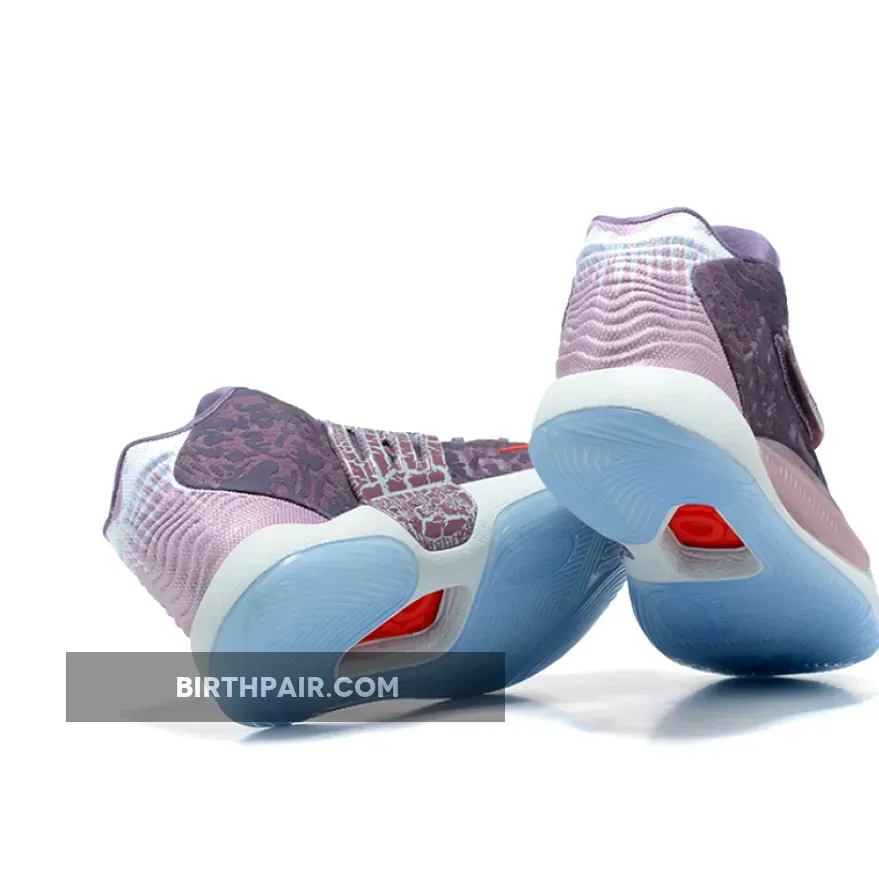 As you can see in the official images, this sneaker is quite unique, although there is no doubt that this model is meant to represent the Holiday of love. The upper is covered in a gorgeous purple texture, all while a lighter purple is then placed around the tongue, and even the strap on top. There are elements of red on the Nike swoosh, as well as on the KD logo that appears on the tongue. With that being said, the V-Day vibes are very strong here.