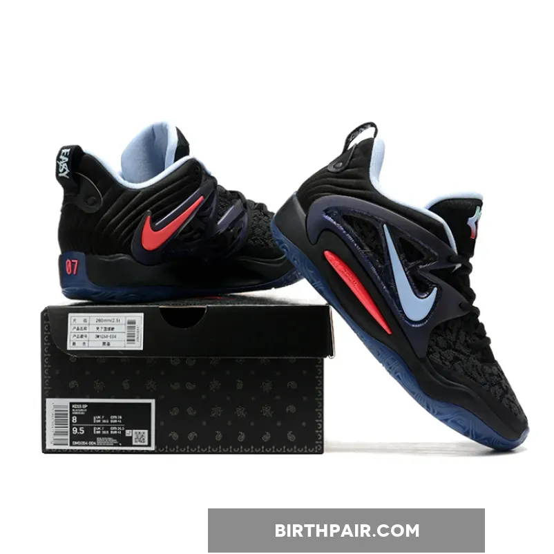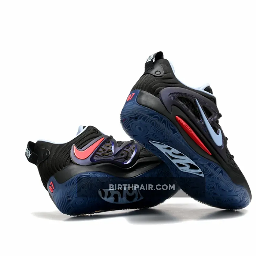 Master the game with Nike KD 15 Black Red Light Blue. Made to deliver style, speed and comfort, this iteration of American basketball player Kevin Durant’s 15th signature shoe is great for an outdoor court and beyond. Its lightweight build features a tonal black mesh upper that’s supported by blue TPU overlays on the side panels including a fashionable sky blue Swoosh.