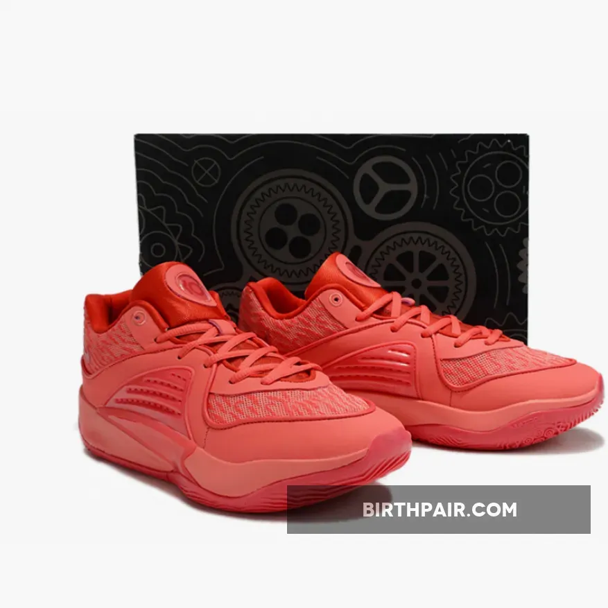This pair exhibits a complete ember red color scheme from top to bottom.