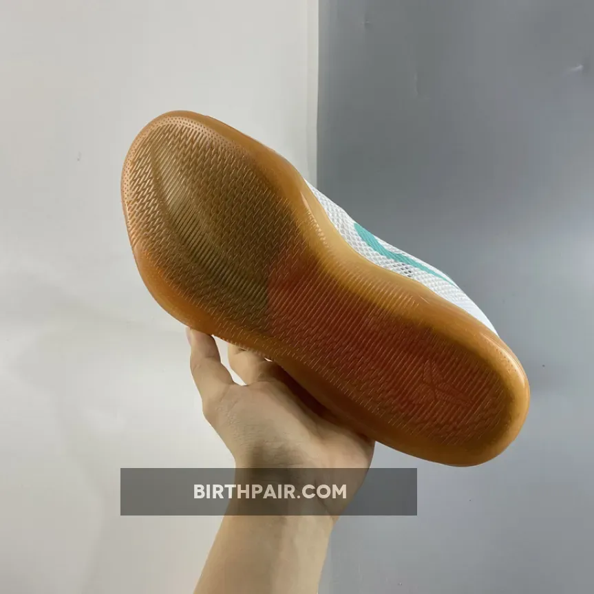 this pair adds teal and crimson accents to a white Engineered Mesh upper. The shoe rides atop a season-appropriate gum rubber outsole.