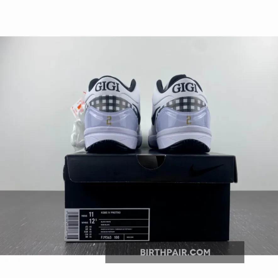 Originally debuting in 2008, the Kobe 4 was a highly revered silhouette for both sneakerheads and ballers alike. Limited edition colourways such as the “Carpe Diem” and “Four Rings” from 2009 made them a great addition to Kobe’s Lakers Uniform at the time. Now, Nike is retro’ing the silhouette in 2023 to celebrate the larger-than-life spirit of Gianna “Gigi” Bryant with this Mambacita edition.Arriving on what would have been her 17th Birthday, the pair nods to many of Gigi’s personal touches from both on and off the court. The white and black binary colourway is based on her youth basketball jersey, while the gingham around the heel and on the insole is a reference to the plaid shirts the Gigi often had wrapped around her waist. Head on underfoot and a red mini-Swoosh subtly nods to how Gigi would wear a red bow in her hair for school photos. As per-usual, the gold Mamba logo is embossed onto the tongue in gold, while a matching set of Mambacita hearts and wings on the insole allows you to represent Gigi’s love for the nature of competition.The Nike Kobe 4 Protro “Mambacita Gigi Bryant” will be available via SNKRS on the 5th of May, so make sure to tune into Our Store Supplier if you want to own this very special edition.