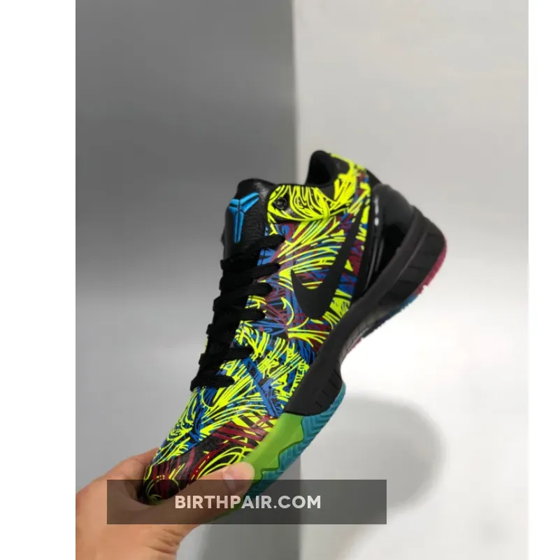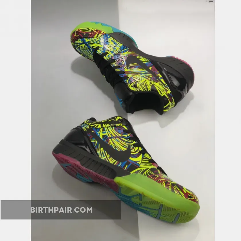 This offering of the Nike Kobe 4 Protro is inspired by Kobe Bryant’s book that features an array of colored streaks on the upper. Other details includes Black tumbled leather tongues, a matte Black heel cup atop a colorful rubber sole.
