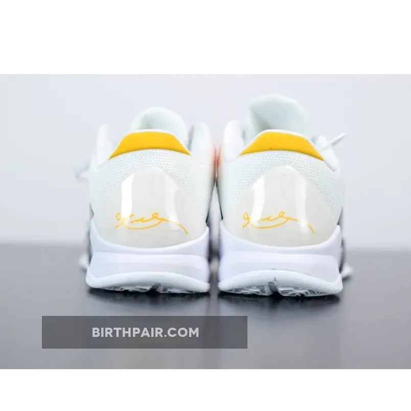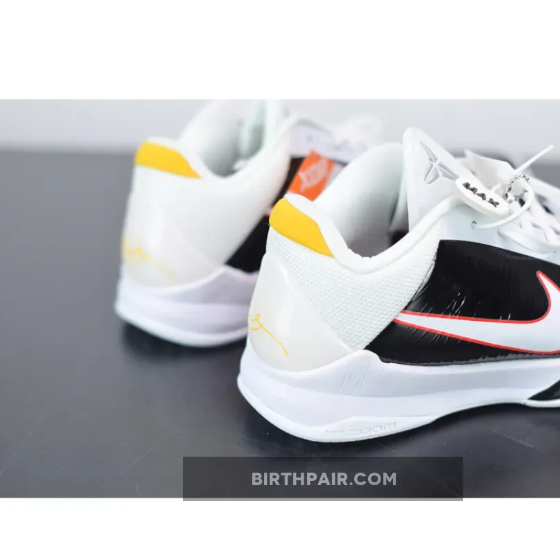 Dressed in a White, Black, Comet Red color scheme. This Kobe 5 Protro features a White and Black upper with the iconic scratch marks on the forefoot as a nod to Lee’s battle wounds from the film “Enter the Dragon.” Other details includes Red outlining the Swooshes, Yellow accents in the rear and Silver Kobe logos on each tongue.