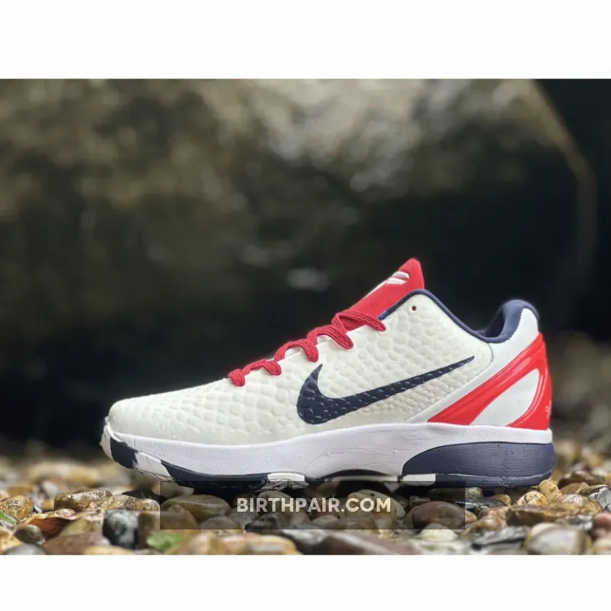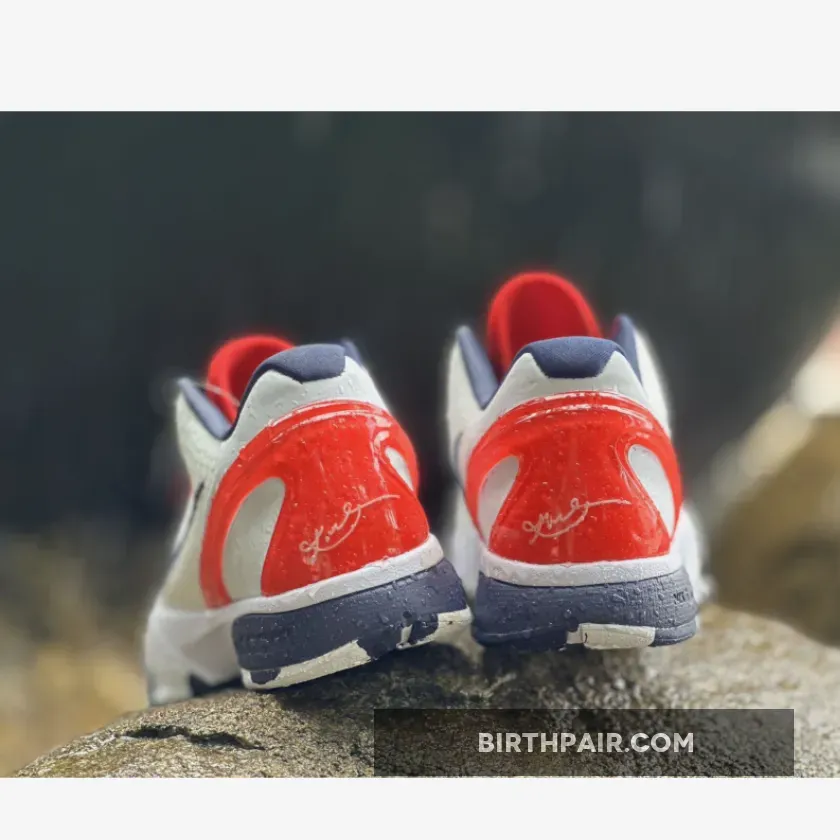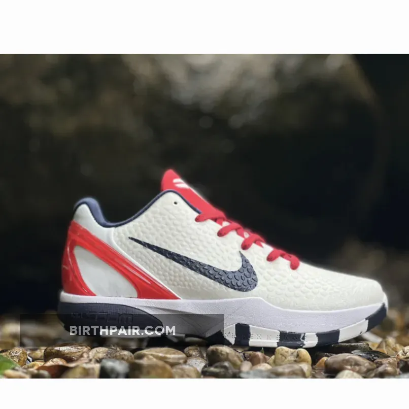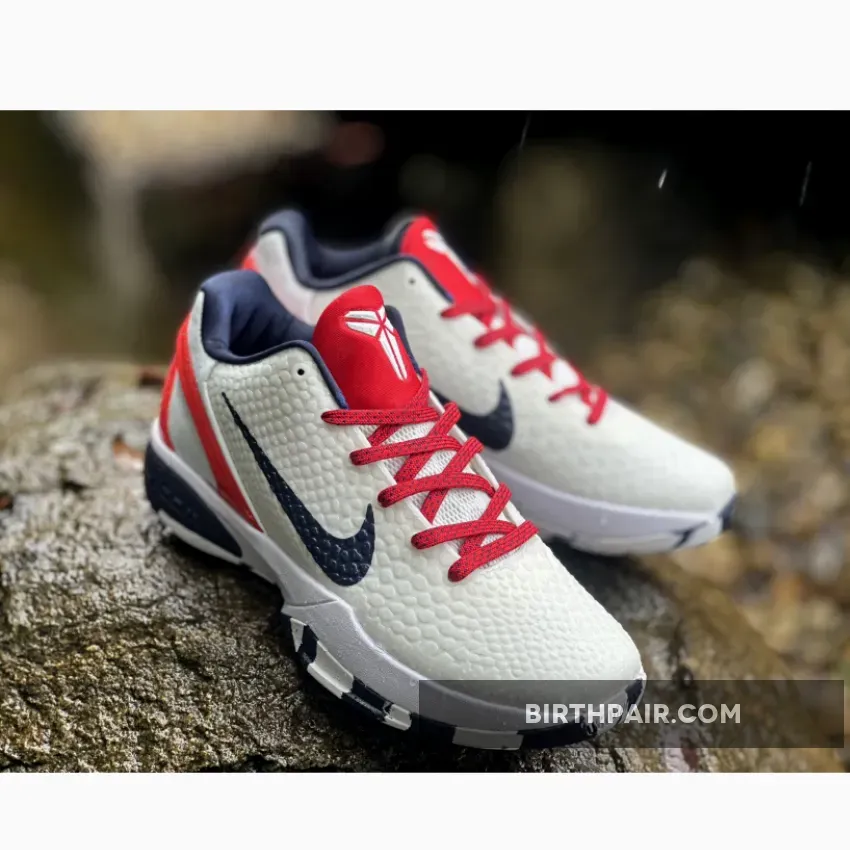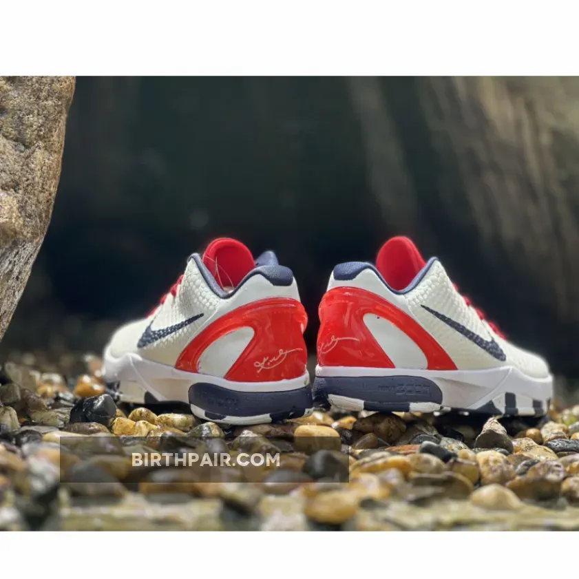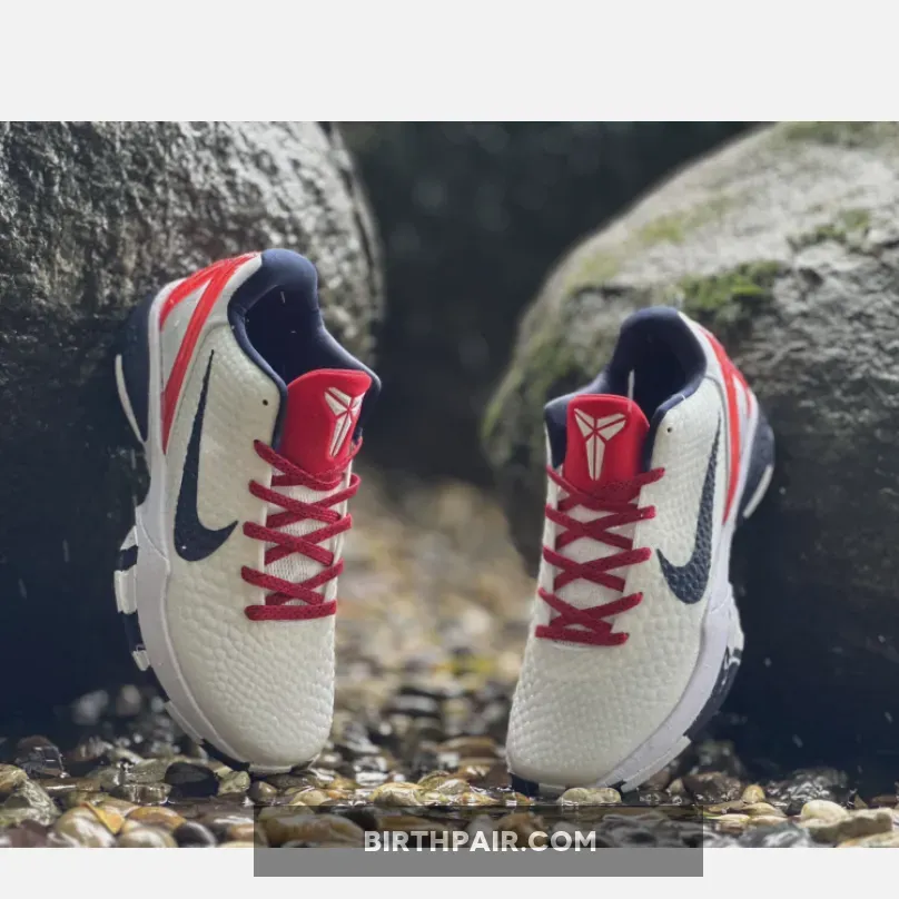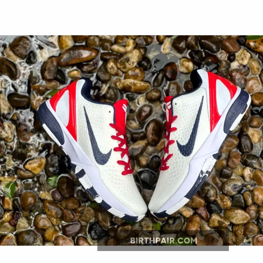 The first pair’s upper is predominantly decked in White with Navy Blue accents on the Swooshes, the sockliner, with both working in tandem over the sole unit. The second contrasts this with a Navy Blue base layer with White accents on the Kobe logo, Swooshes, midsole, and heel overlay. Both pairs are imbued with with Red accents to complete the trifecta of colors that form the Stars and Stripes.