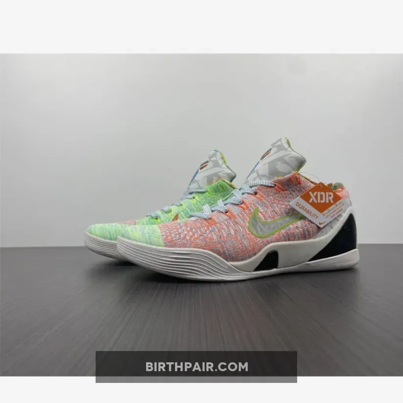 Released in January 2015, the limited edition Nike Kobe 9 Elite “What The” incorporates previous Kobe 9 colorways into its multicolor Flyknit upper. The shoe also features reflective tonal graphics, a speckled grey midsole, and a print mélange on the inner collar.
