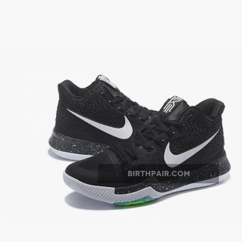 The Nike Kyrie 3 honors the individuality of a cult icon and his artistic on-court performance. The Nike Kyrie 3 ‘Black Ice’ sneaker is a blend of the first two models with a durable Hyperfuse upper—a combination of mesh and synthetic materials with TPU skin detailing. Tonal spikes and Roman numeral placements symbolize the athlete’s unconventional outlook and personal values. The Phylon midsole reaches back to the first edition with extended traction.