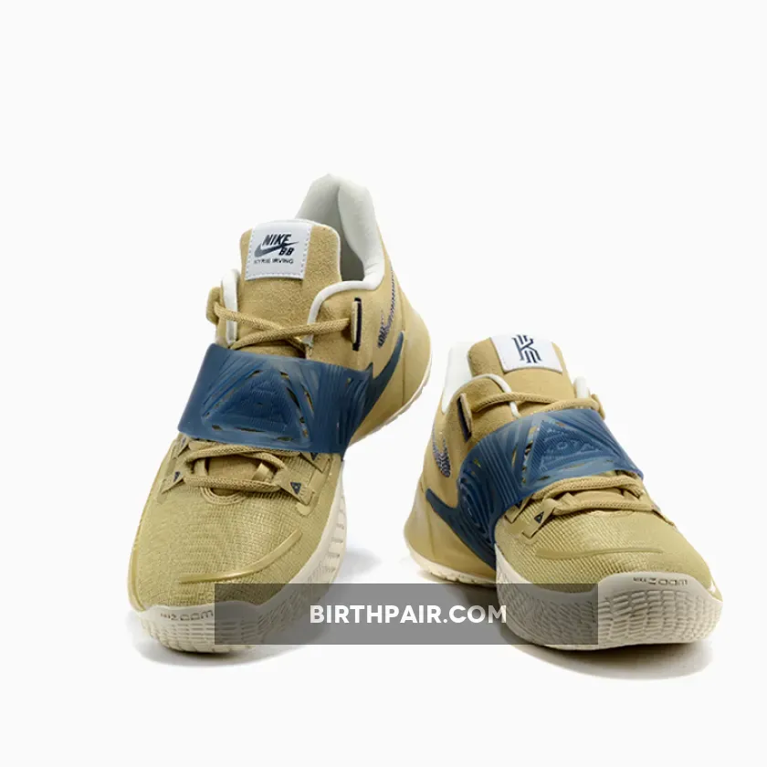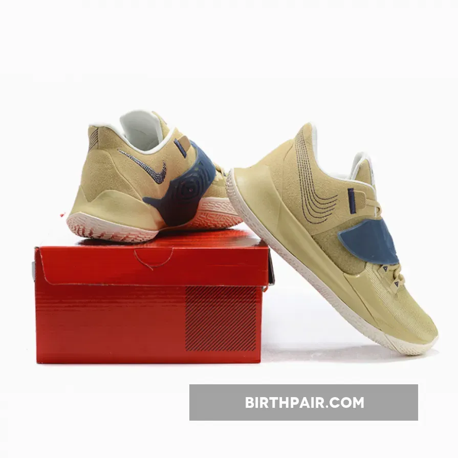 The Nike Kyrie 3 Low “Sashiko” (translated as “little stabs”) incorporates the Japanese technique of decorative stitching, featuring concentric circles on the quarter panel and a re-imagined Swoosh. The design also salutes Kyrie’s connection to skateboarding, with a Nike BB hit on the heel that riffs on Nike SB’s logo.