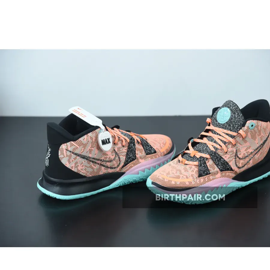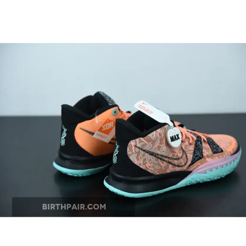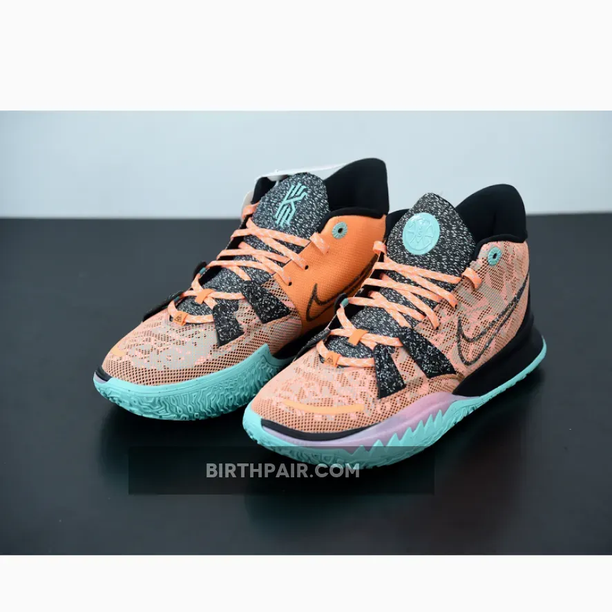 For the latest Kyrie 7 colorway, sustainability appears to be a possible theme behind the pair as noted by the plants growing above Irving’s ‘K’ logo, but there’s currently no indication that eco-friendly materials have been used on this specific shoe. The upper wears an orange color scheme while the tongue features green ‘ASW’ tags akin to the aforementioned “All-Star” KD 13. Capping off the look is a pink and black midsole and a teal outsole.
