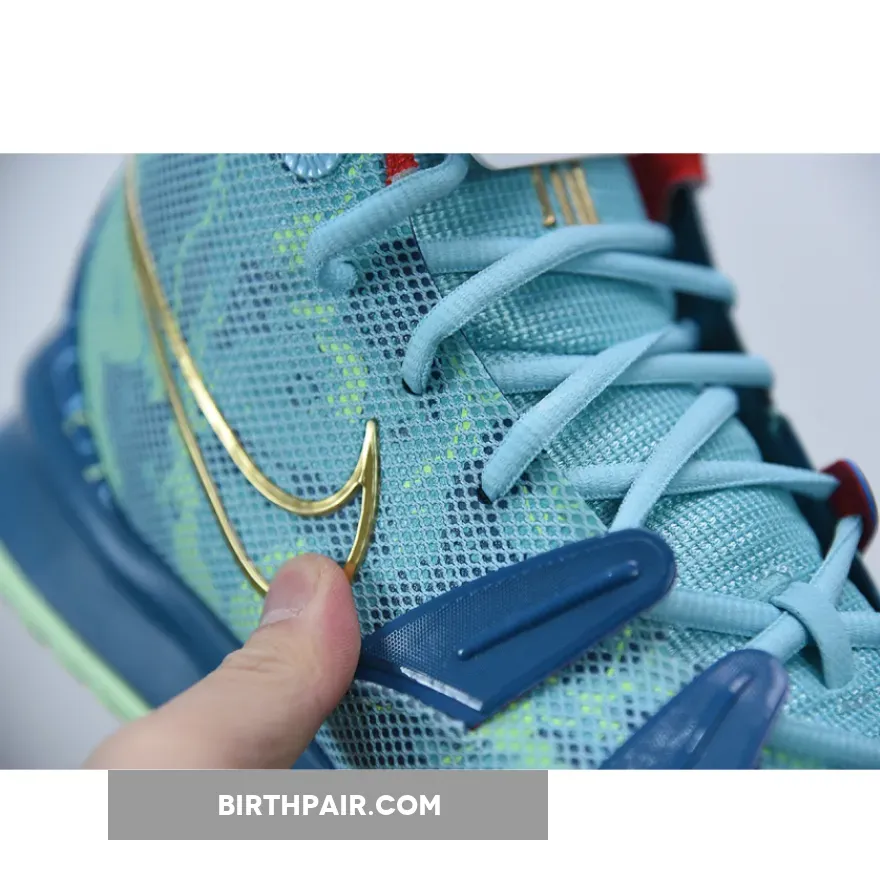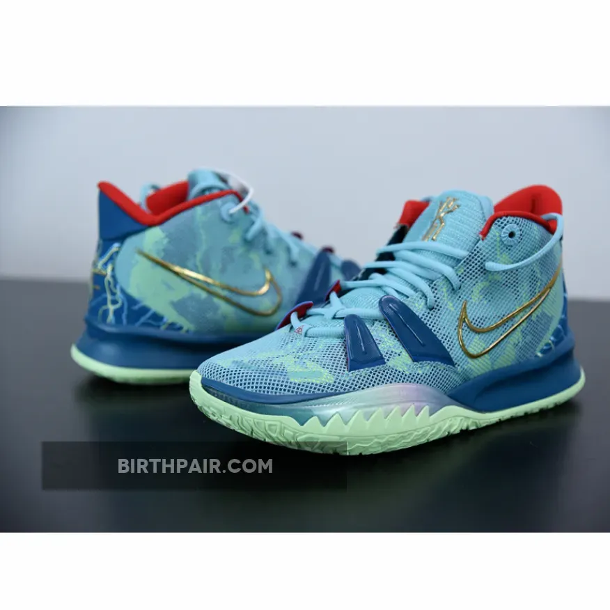 “I’m stoked with my Kyrie 7 ‘Special FX’! The ventilated mesh and camouflage-inspired upper are sick designs. Golden accents and red liners add a luxe touch. Performs well on court, too!”