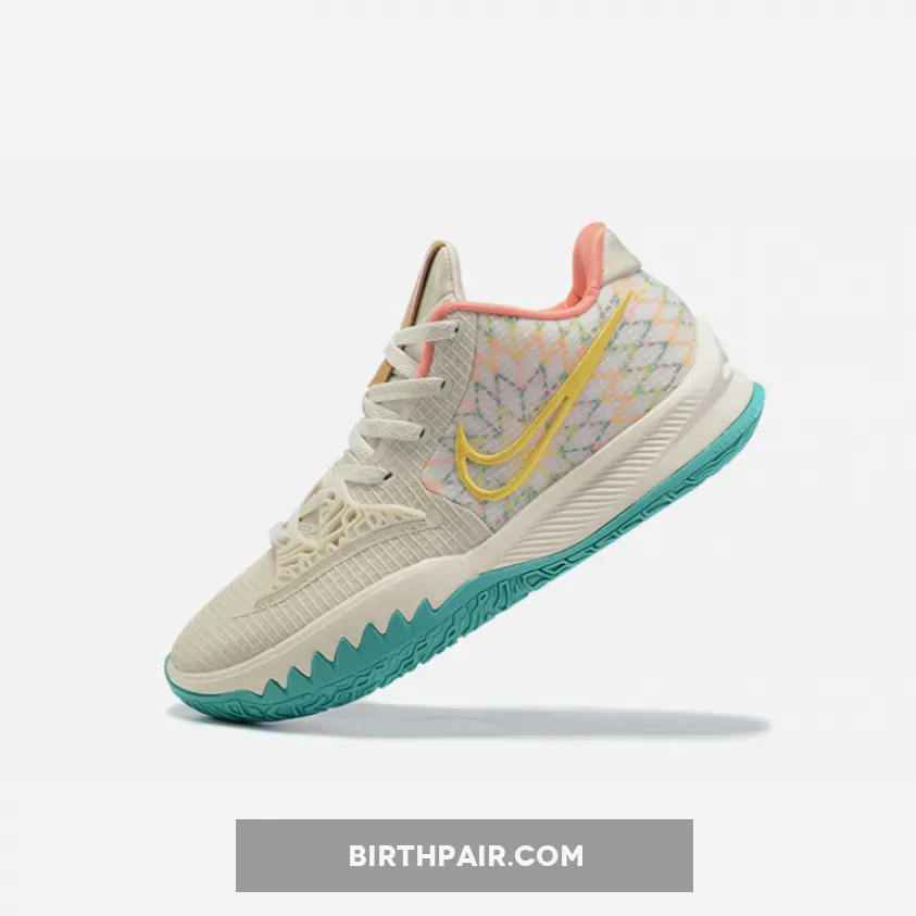 This Nike Kyrie Low 4 dubbed ‘N7’ features Light Tan across the upper while accents of Teal, Peach, and Yellow run throughout. Following, Tan Leather appears on the tongue with the ‘Standing Rock’ and ’N7’ logo. Lastly, we have Turquoise on the insoles along with a special N7 box.
