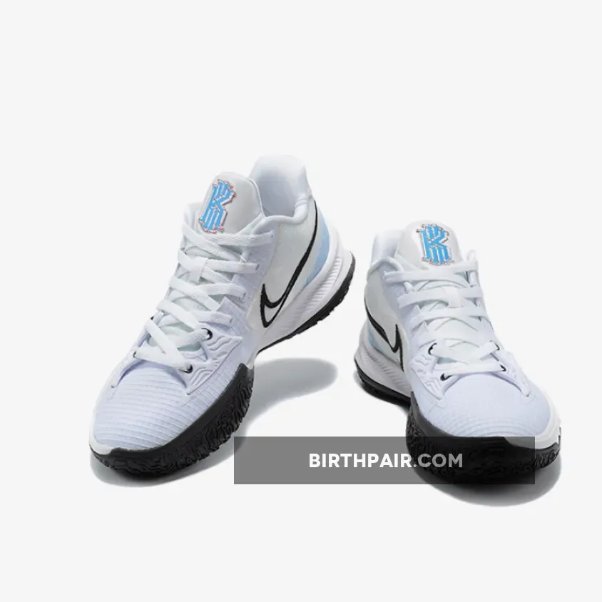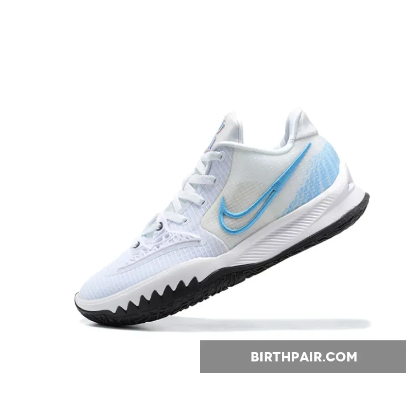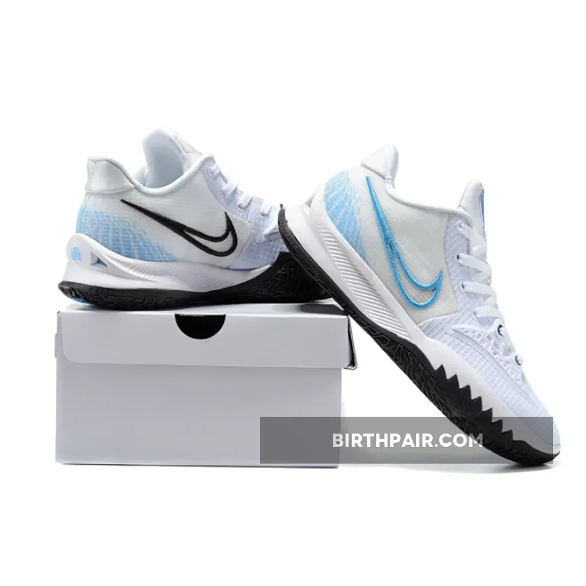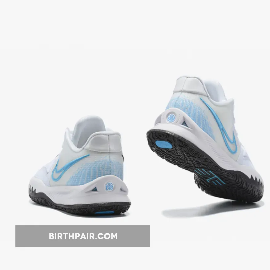 Solid color combo on the Nike Kyrie Low 4. White base with Laser Blue & Dark Raisin accents. Supportive cage overlay enhances stability. Excellent traction with the rubber outsole. Overall, a stylish & functional basketball shoe. #NikeKyrieLow4 #BasketballShoe #PerformanceStyle