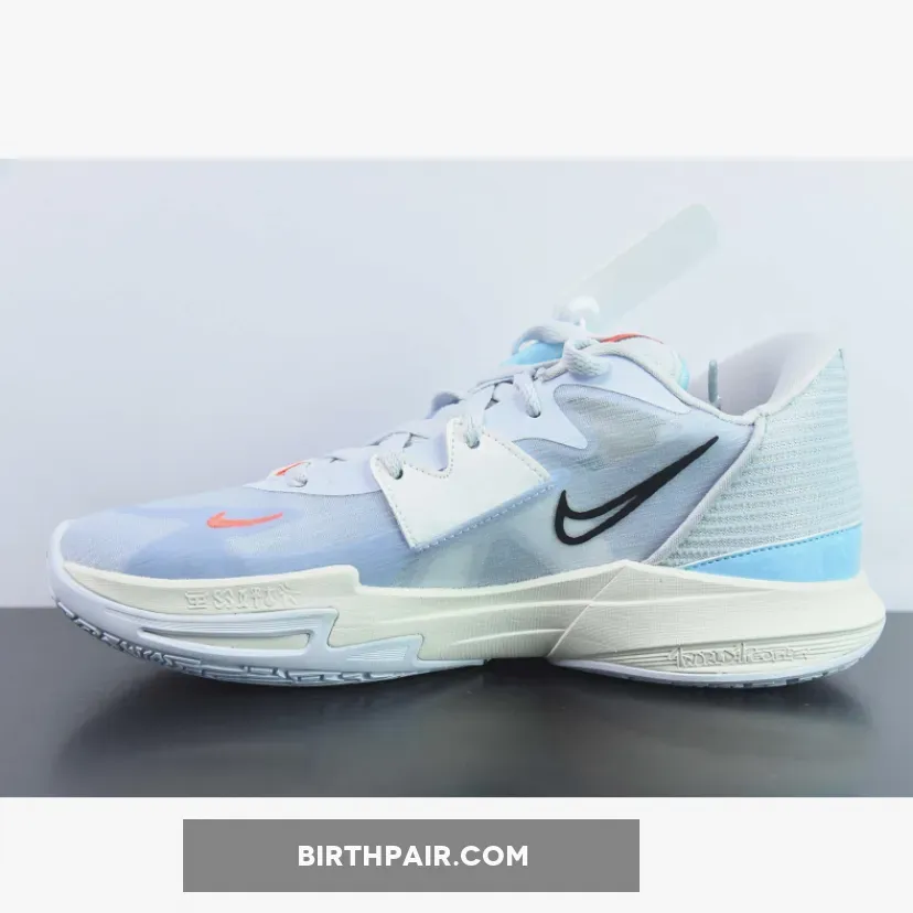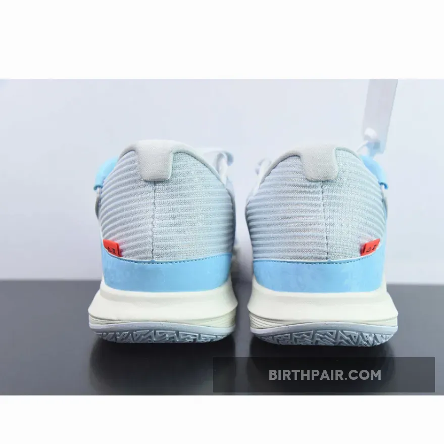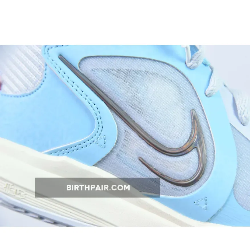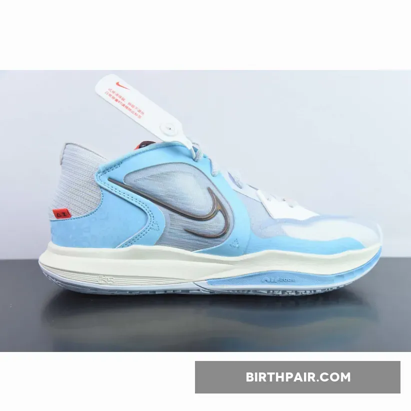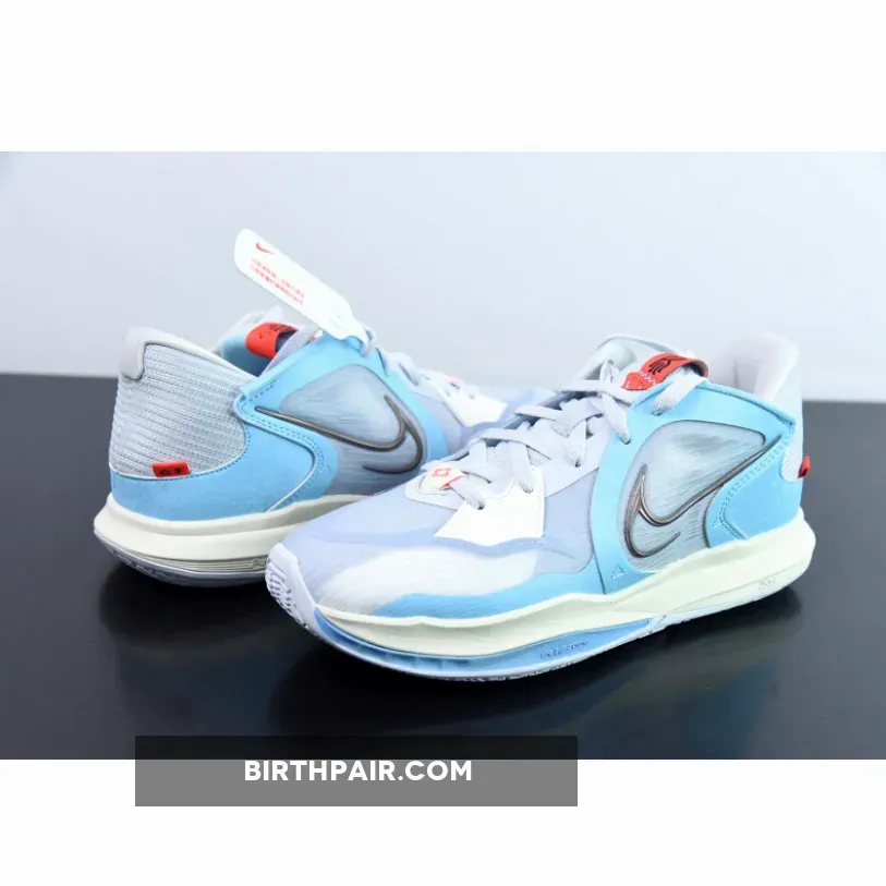This pair boasts a fashionable colourway patterned after the Brooklyn Nets City Edition jerseys. The lightweight textile upper is dressed in tonal grey and complemented with sky blue accents. A creative multicoloured metallic take on the Swoosh and hints of white leather complete the eye-catching design.Meanwhile, fan-favourite Nike Kyrie 5 Low features such as the snug-fit laces with interlocking bands and the plush, contoured collar are retained.The icy blue tone follows onto the midsole and liner, while additional hits of gold outline the profile Swooshes, along with fiery red elevating the tongue and lateral tags.