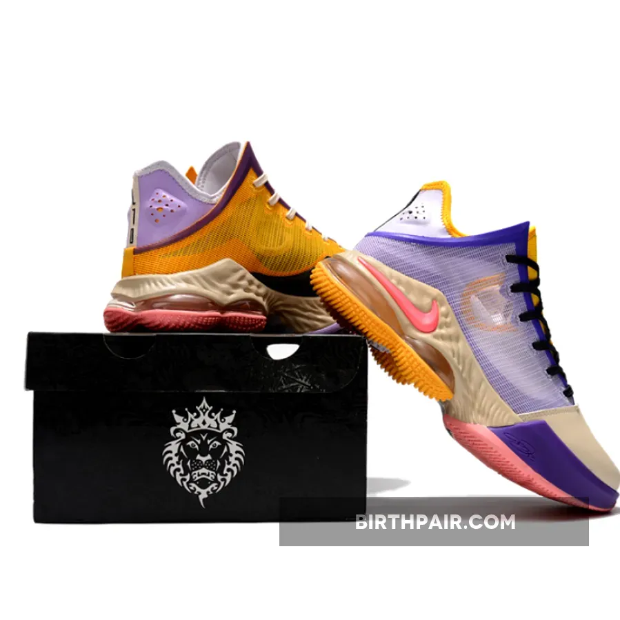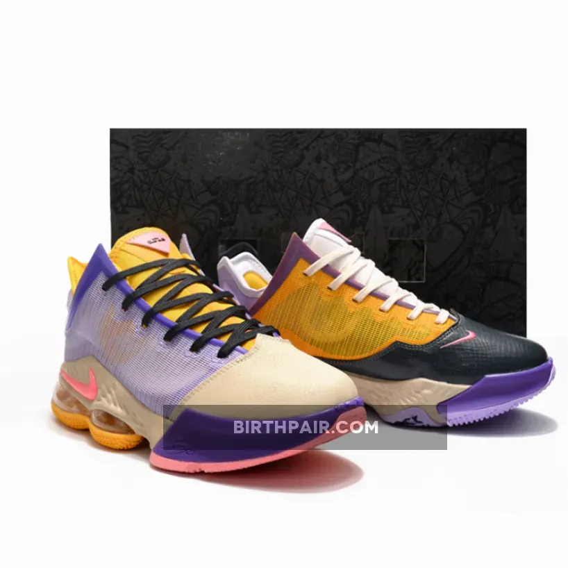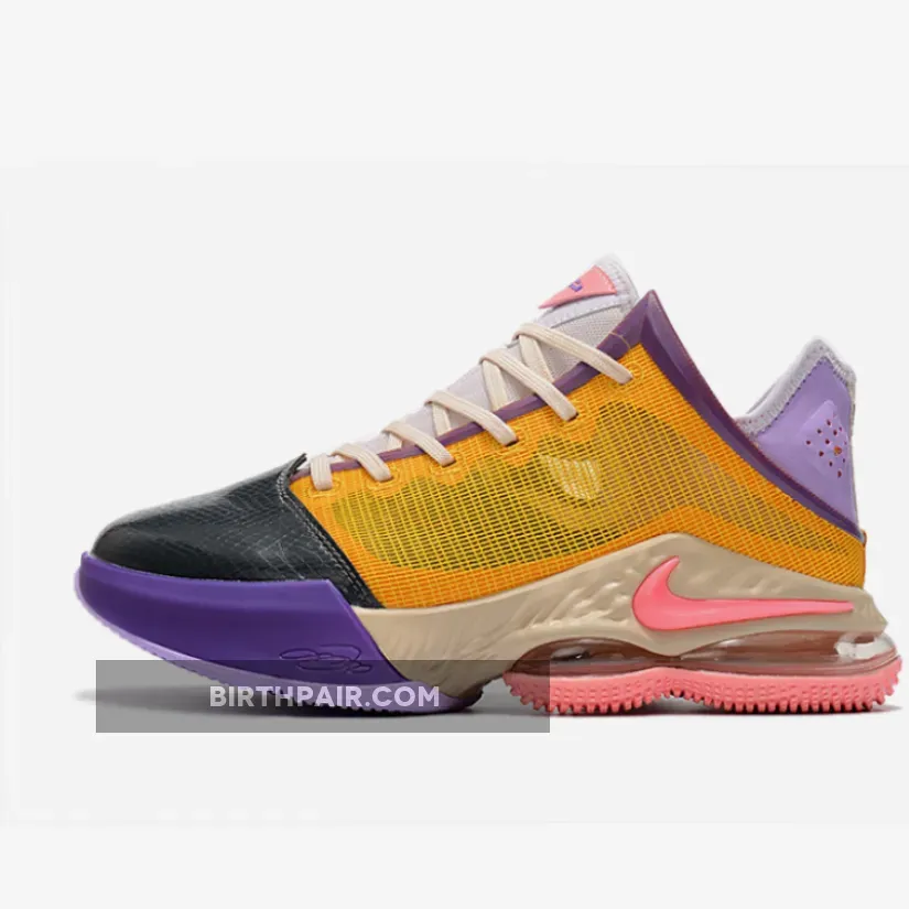A Lakers vibe has been placed on this new mismatched colorway of the Nike LeBron 19 Low as we gear up for the arrival of the Nike LeBron 20. Taking on a mismatched look on the left and right shoe, this LeBron 19 Low gets covered in purple and yellow on the uppers along with cream and black snakeskin-textured toes. The mismatch theme then continues on the inner booties, laces, and even the outsoles.