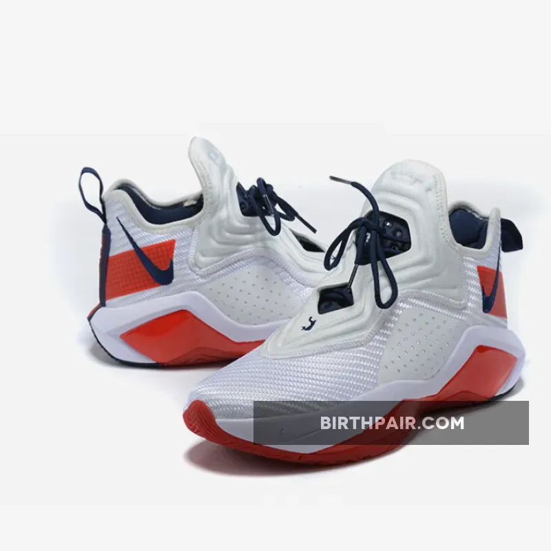 the Nike design team manages to introduced something entirely fresh, and they’ve perhaps delivered one of the most impressive Soldier models to date with the LeBron Soldier 14. The upper shell is primarily a durable woven upper with perforated mid-foot overlays on the lateral and the mesh vent on the medial, while an exterior heel wraps up the achilles for that necessary pinched cushioning below the bone. Classic lacing appears beneath a exterior cover with a lace- lock to ensure a stable lockdown sensation. The true eye-catching visual of the Soldier 14 is the midsole, a “chunky” and chiseled mold reminiscent of the Air Pippen 2, with Zoom Air cushioning embedded in the forefoot and the heel.