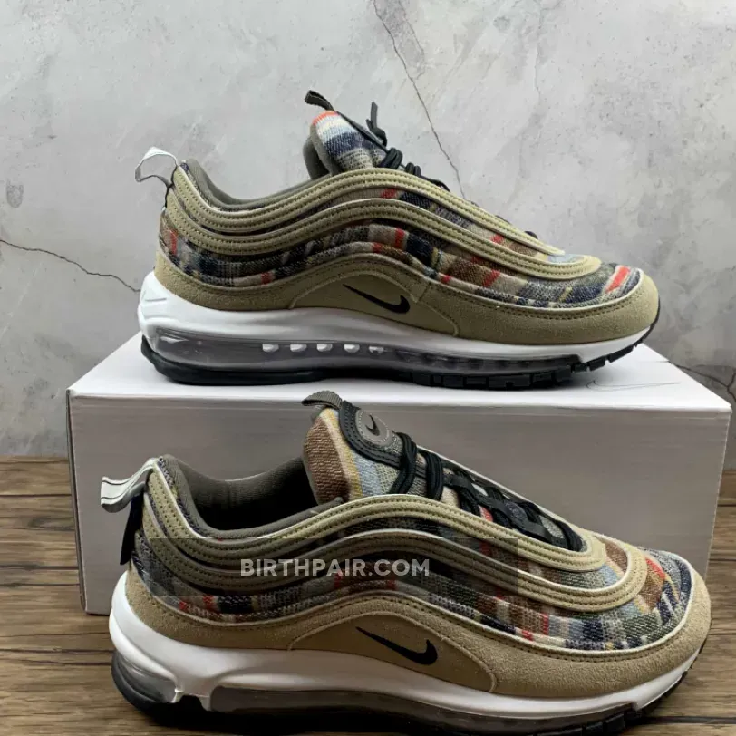“I’m really impressed with my new Nike Air Max 97 ‘Multi’! The unique brown color scheme is so stylish and the wool fabric upper feels luxurious. The waves add a fun touch without being too bold. Comfortable and durable, I’ve worn them daily for weeks. Great collab with Pendleton!”