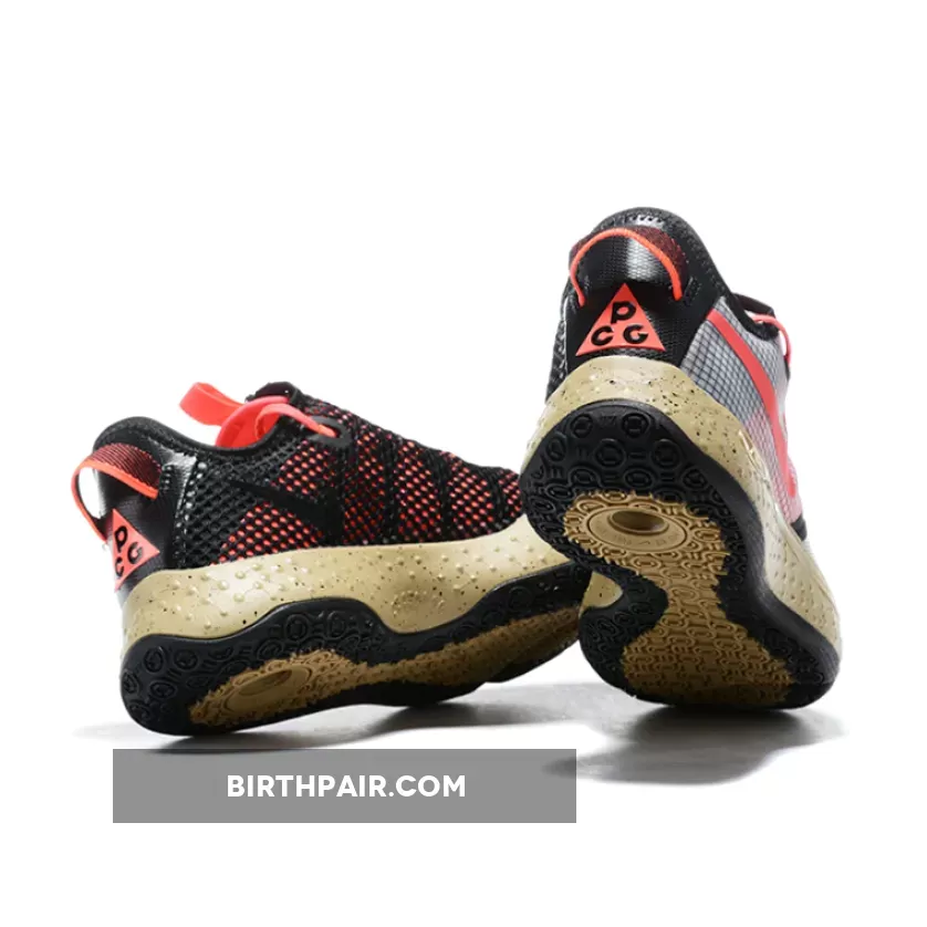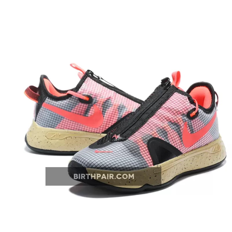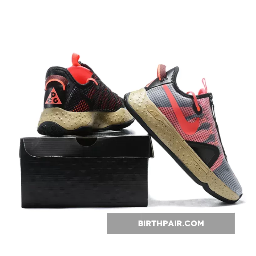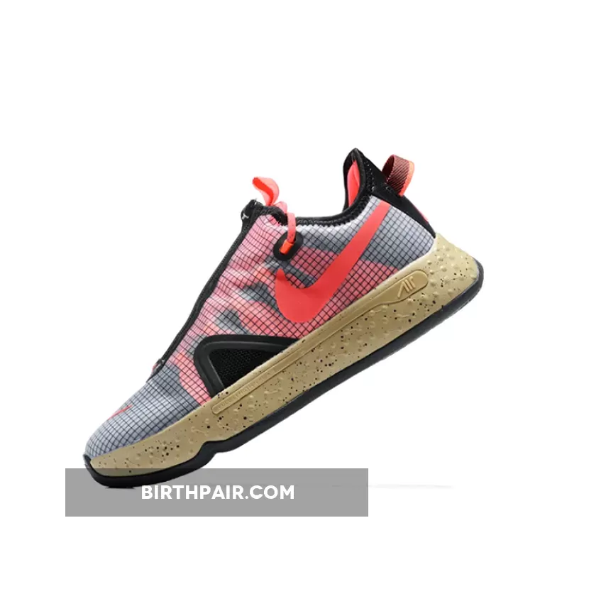 This offering of the Nike PG 4 features a Black base covered fully in digital camouflage graphics detailed with Orange and Purple accents to give off an ACG vibe.