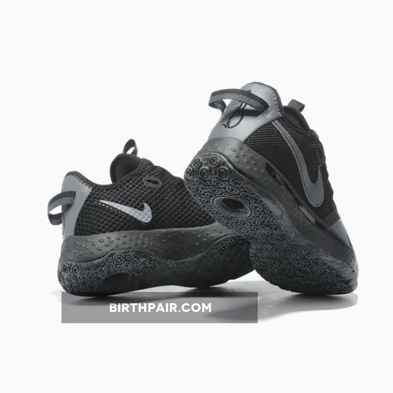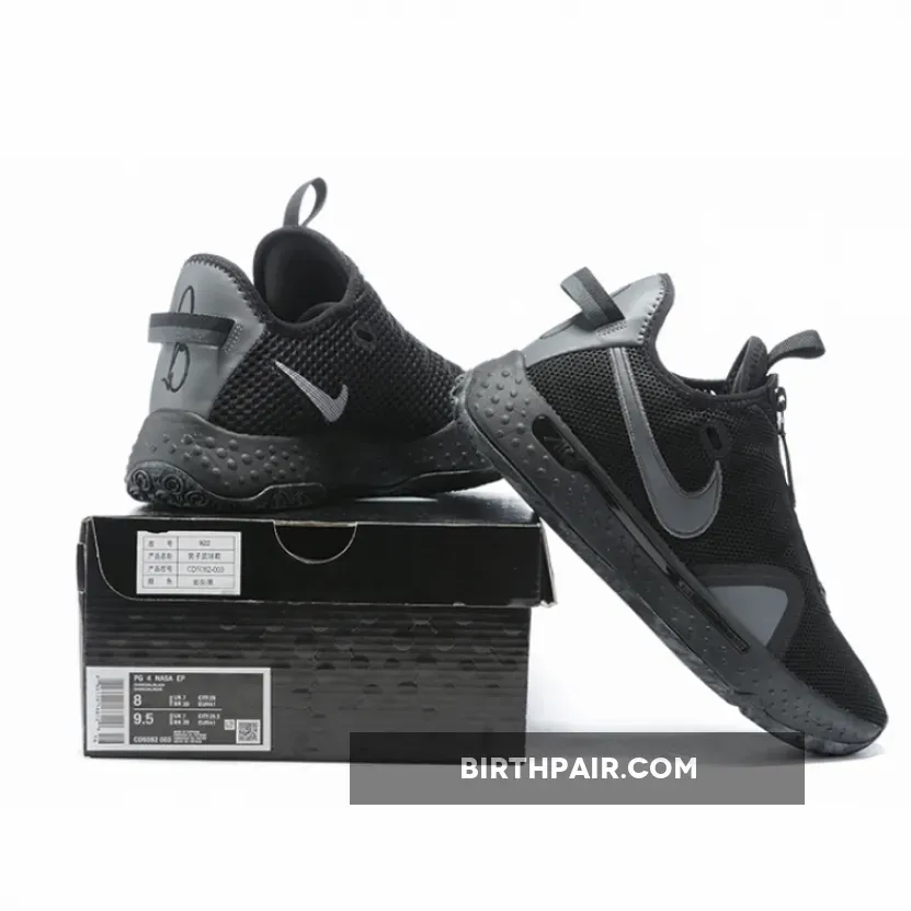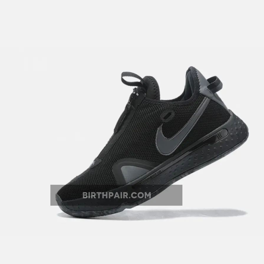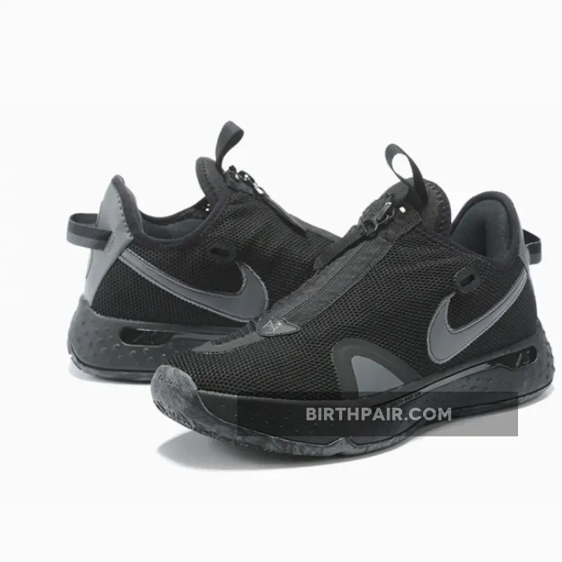 This offering of the Nike PG 4 features a Black-based upper paired with Dark Grey detailing spotted throughout.