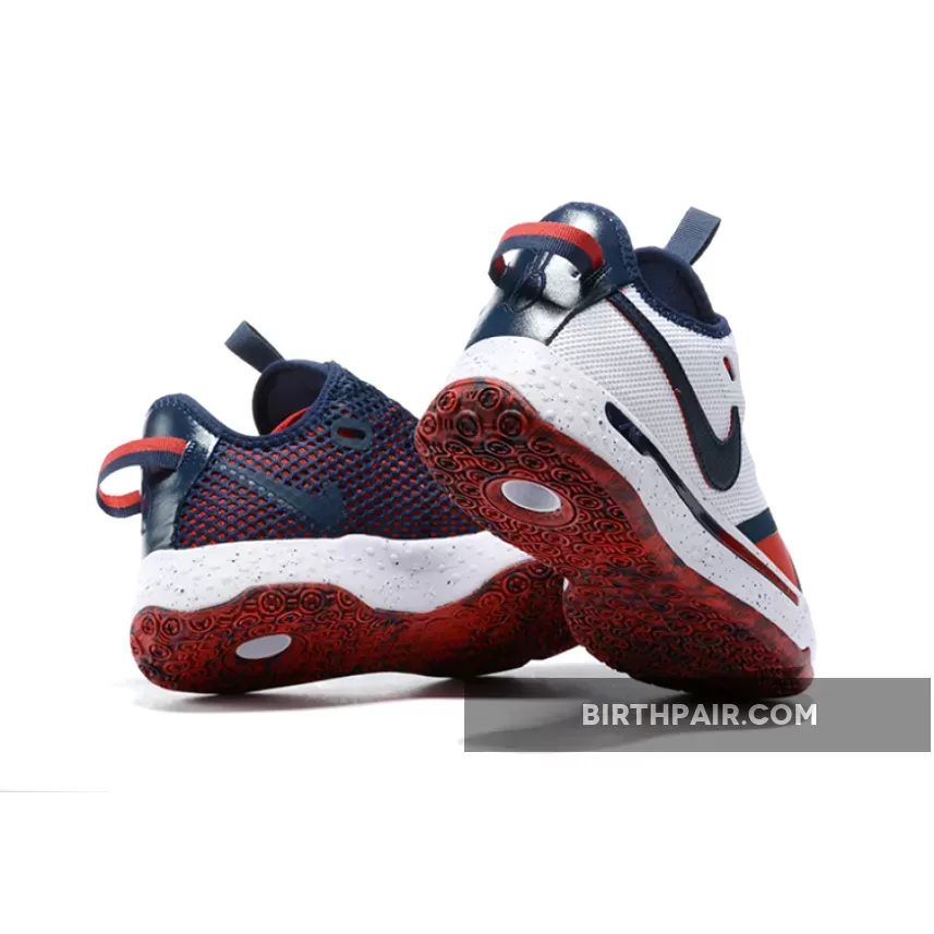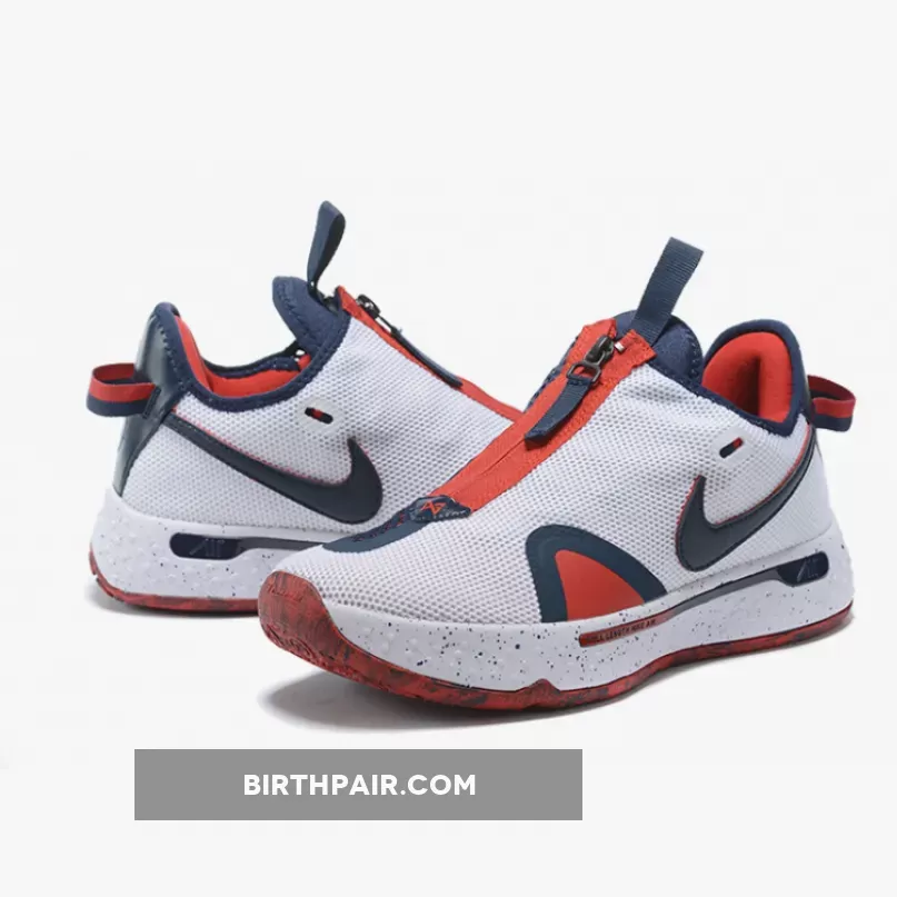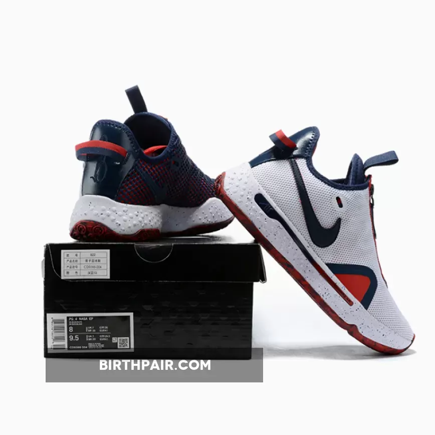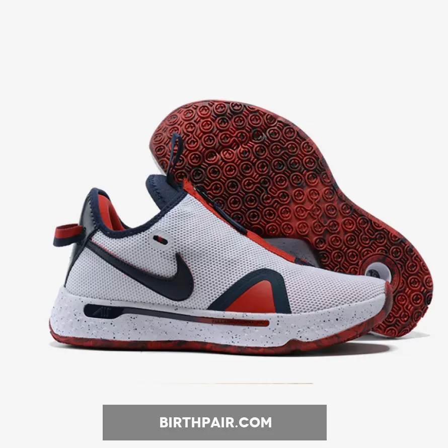 Clean & stylish! PG 4’s White/Navy/Red colorway features a high-quality mesh upper with durable navy & vibrant red accents. Perfect blend of modern & classic vibes. #NikePG4 #BasketballSneakers