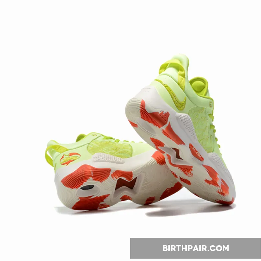 Light yellow-greens and fiery red shades take up the majority of the upper’s real estate, a direct nod to the shades of pickled peppers and the liquids they’re brined in. There’s special textures to be seen on quarter panels and Swooshes alike, but the upper’s most notable detail is present on the lateral heel: a special two-tone embroidered logo that shows a pepper and a fish.