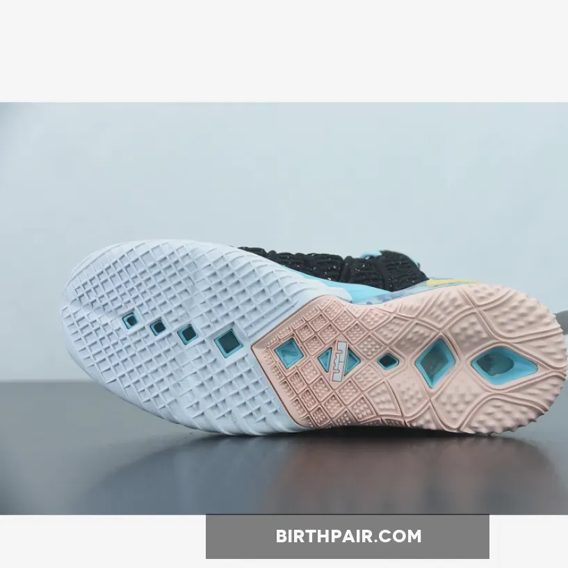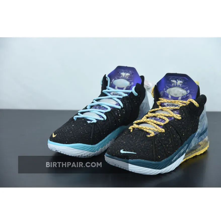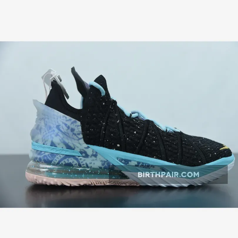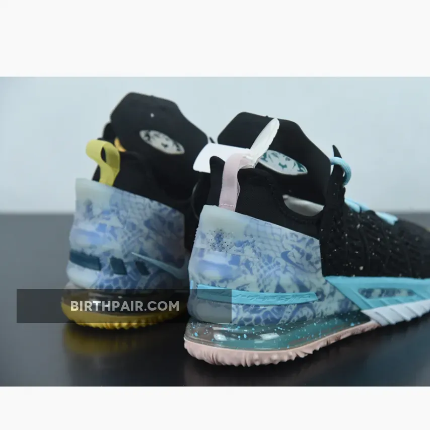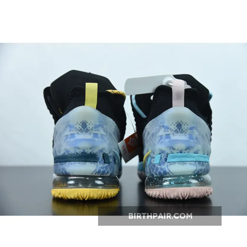 The reflection theme is expressed through slightly altered colors on the left and right shoe, with variations on the sole, logos, heel tab and laces. Iconography representing his 17 seasons to date creates unique collages that appear as graphics on the heel, tongue and sockliner. With a lightweight black Knitposite 2.0 upper, durable molded heel clip, new Air system in the tongue and a full-length Air Zoom unit combined with a Max AIR unit in the heel, this game-changing design elevates the LeBron signature line to the next level.