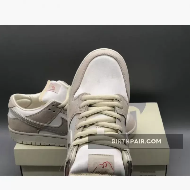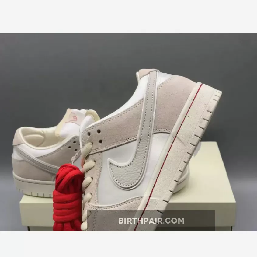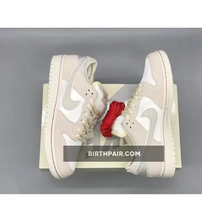 For the uninitiated, the red string of fate is the belief that everyone’s pinky finger is tied to an invisible thread, one that will inevitably lead you to your destined person. Crafted with a satin base, plush suede, and textured tumbled leather overlays, these sneakers capture the essence of romance effortlessly. What sets them apart is the clever incorporation of a red string seamlessly woven into the Nike SB logo on the tongue, a powerful symbol of the enduring connection represented by the red thread of fate. While much of the shoe is understated in form — consisting almost entirely of neutral colors — the pair does visualize the legend across its insoles, depicting two hands connected by said imperceivable cord. What’s more, the latter also wraps around the Swoosh of the adjacent tongue label. To round off the lovable design, a white rubber sole adorned with red stitching along the midsole completes the picture.
