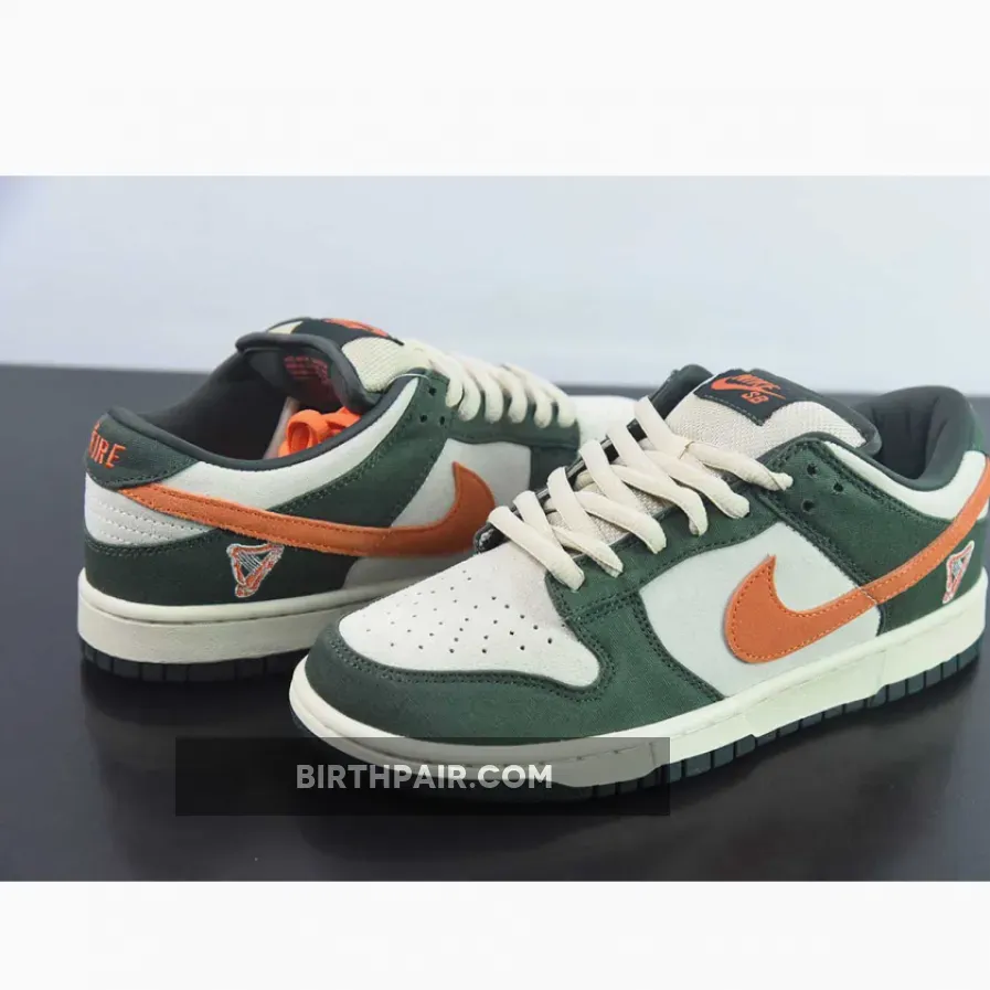 “I’m really stoked on these Eire Dunks! The suede is top-notch, and the Celtic harp design is sick. The deep orange swoosh pops nicely against the net background. Quality’s on point, no complaints here. Would def rep again. 5/5 stars”