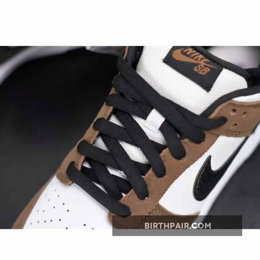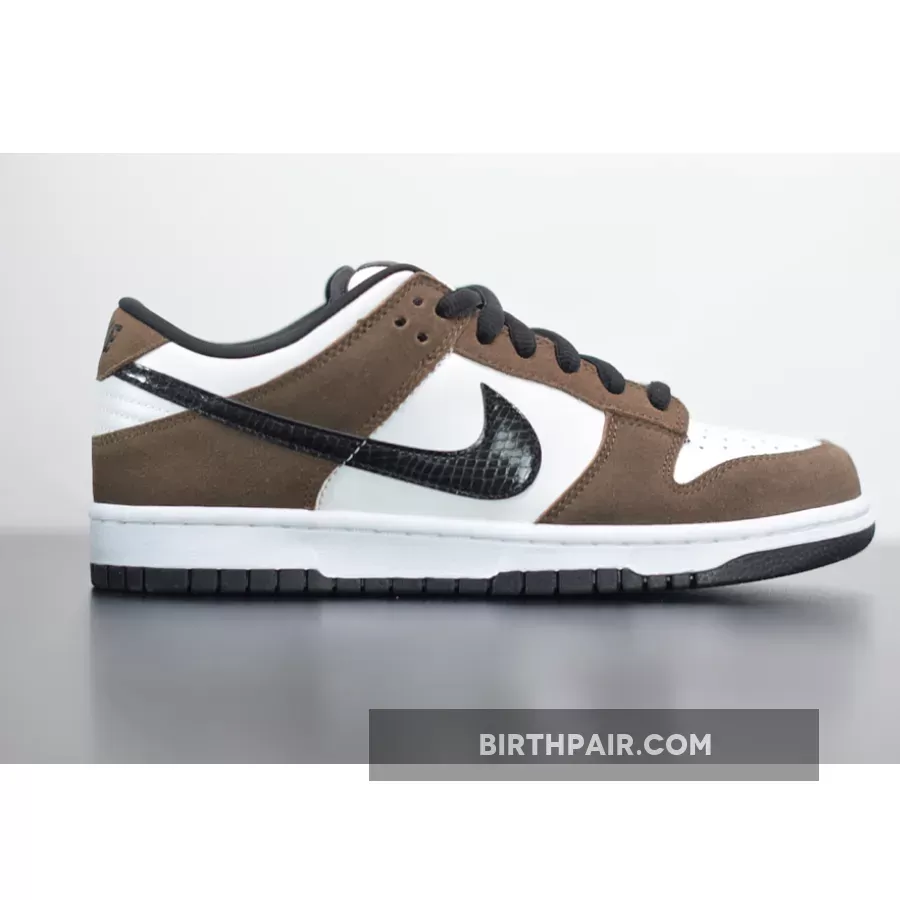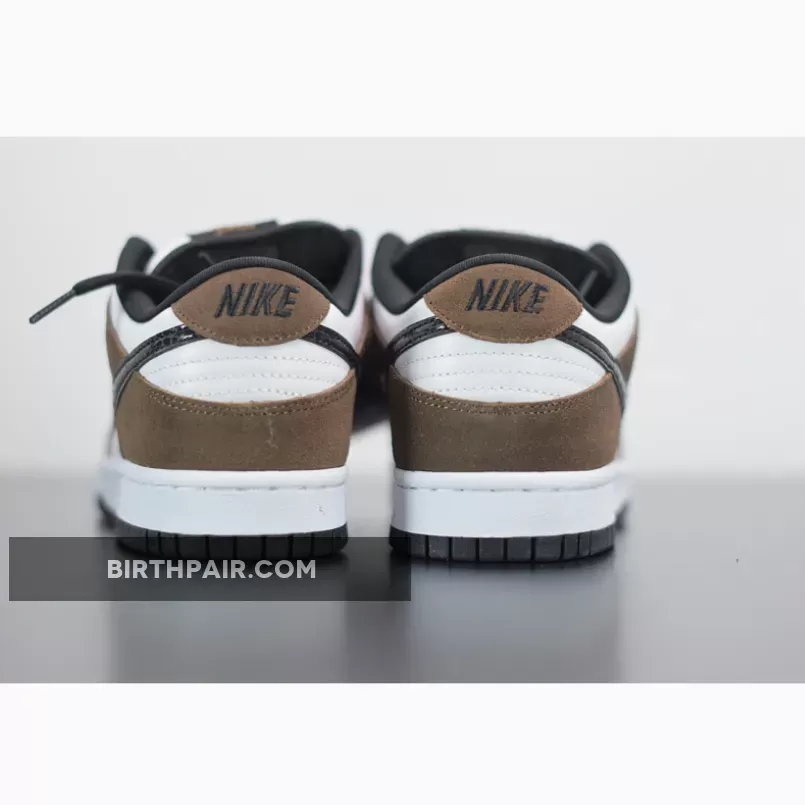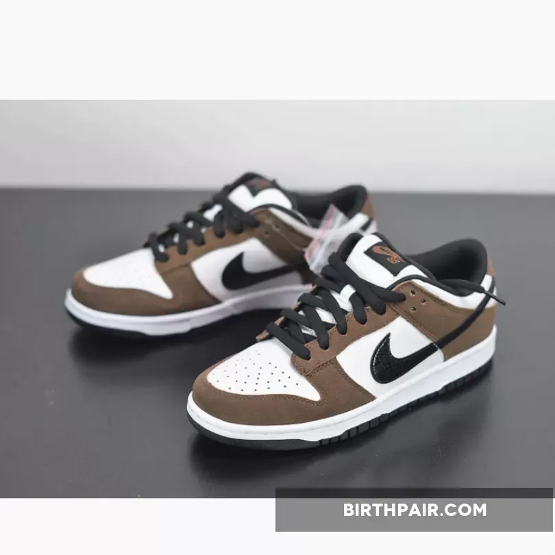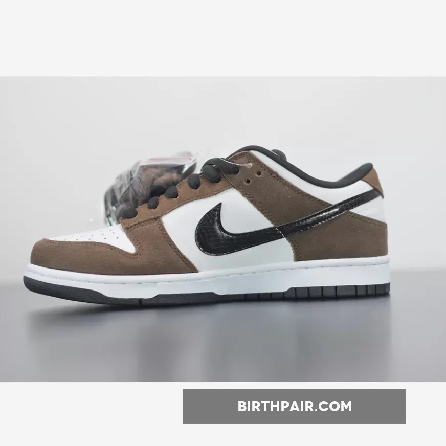 Dressed in a White, Black, and Trail End Brown color scheme. This Nike SB Dunk Low has become an even more popular skate shoe since the debut of the Travis Scott x Air Jordan 1, due to its similar color blocking – throw some Pink laces in them and you got yourself a Travis Scott SB Dunk Low. The shoe features a White leather base with Brown suede overlays. Black leather snakeskin Swooshes, matching-colored laces, inner lining and rubber outsole completes the design.
