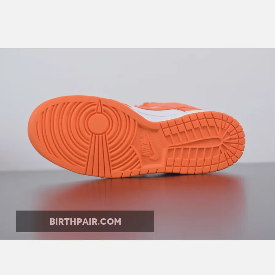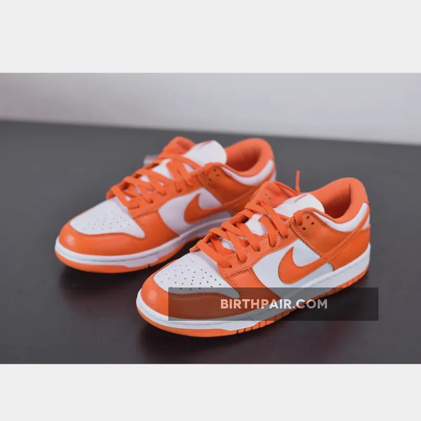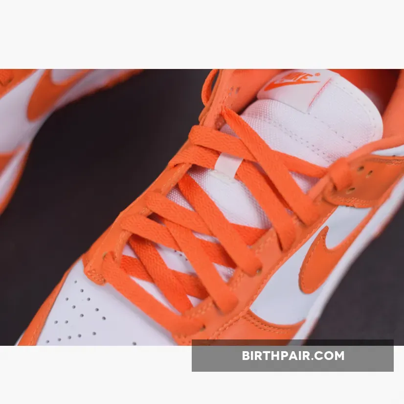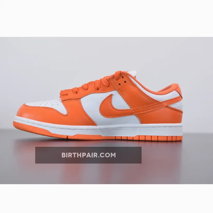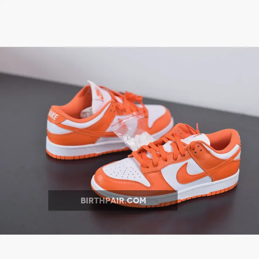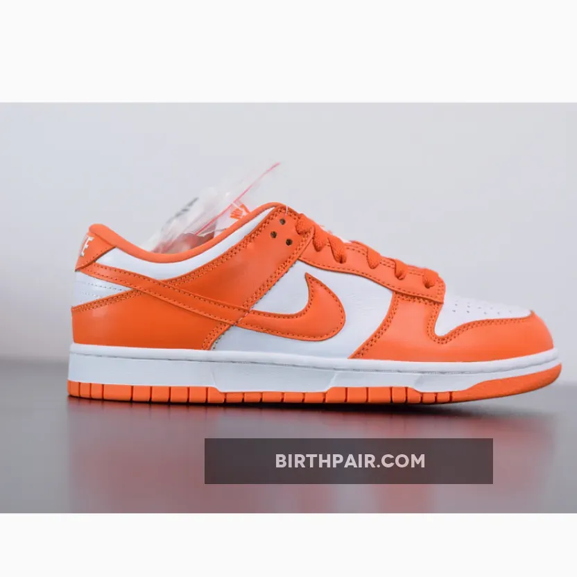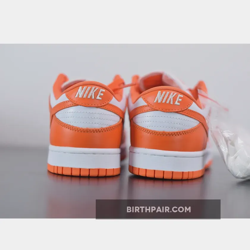 Solid colorblocking on the Dunk Low ‘Syracuse’ Orange Blaze. Comfortable and stylish, perfect for casual wear or skating. Quality materials, love the pop of orange. Recommend!
