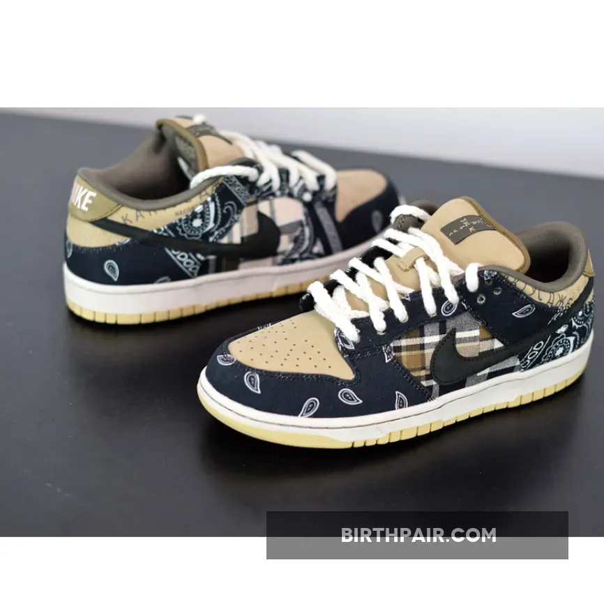 With high heat collabs like his Air Jordan 1 and Air Force 1 that made their way to our collections and our hearts last year, there’s no stopping Travis Scott, and it doesn’t look like he’s taking a break anytime soon as he unveils the Travis Scott x Nike SB Dunk Low Cactus Jack. First spotted in his music video for JACKBOYS, this is his first collaboration with the Beaverton based brand’s skateboarding division, and it’s a shoe to remember.Painted in a tan and navy colour scheme, the first thing that you’ll notice about this Dunk is the bandana pattern that makes its way across the entire upper. Smooth leather makes it way to the lateral and medial side Swoosh and toe box, while a tartan print also features for a look that is sure to turn heads. A white rope-like lace ties it all together, and to round it all off, a “CACTUS JACK” tag is stitched onto the tongue, finalising the design.Pretty much nothing else is known about the La Flame’s Travis Scott x Nike SB Dunk Low Cactus Jack, but we should expect them to release sometime within the first half of 2020. Keep your eyes peeled as more info is being revealed on a daily basis.