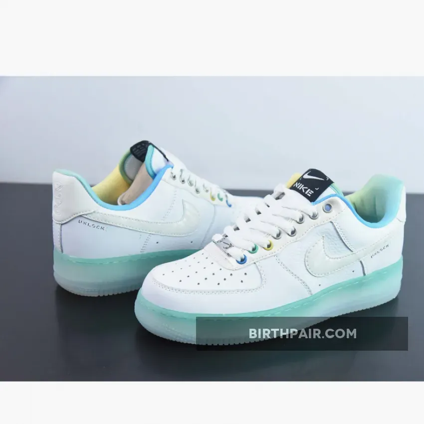 the “Unlock Your Space” concept previously appeared on other beloved silhouettes – including the Air Max 1. Seemingly a play on the basketball idea of “creating space,” Each pair comprises vibrant colors, abstract patterns, and “blank spaces” begging for users to customize their Air Force 1‘s. The latest style favors a clean look that’s animated by hits of blue, green, and yellow. A semi-translucent, gradient outsole appears on the latest version of Kilgore’s 40-year-old design. Special logos at the spine, sockliner, tongue, and lace dubrae round out the shoes.