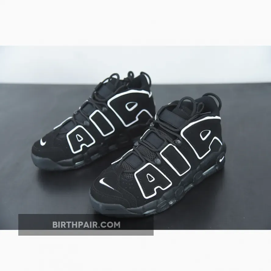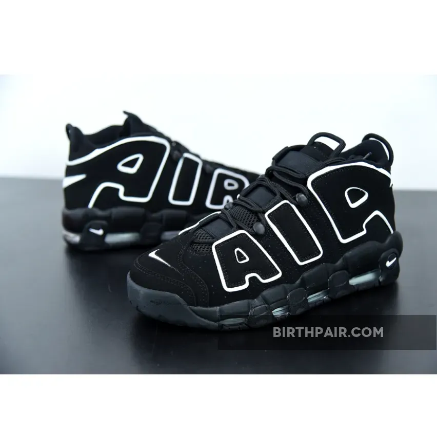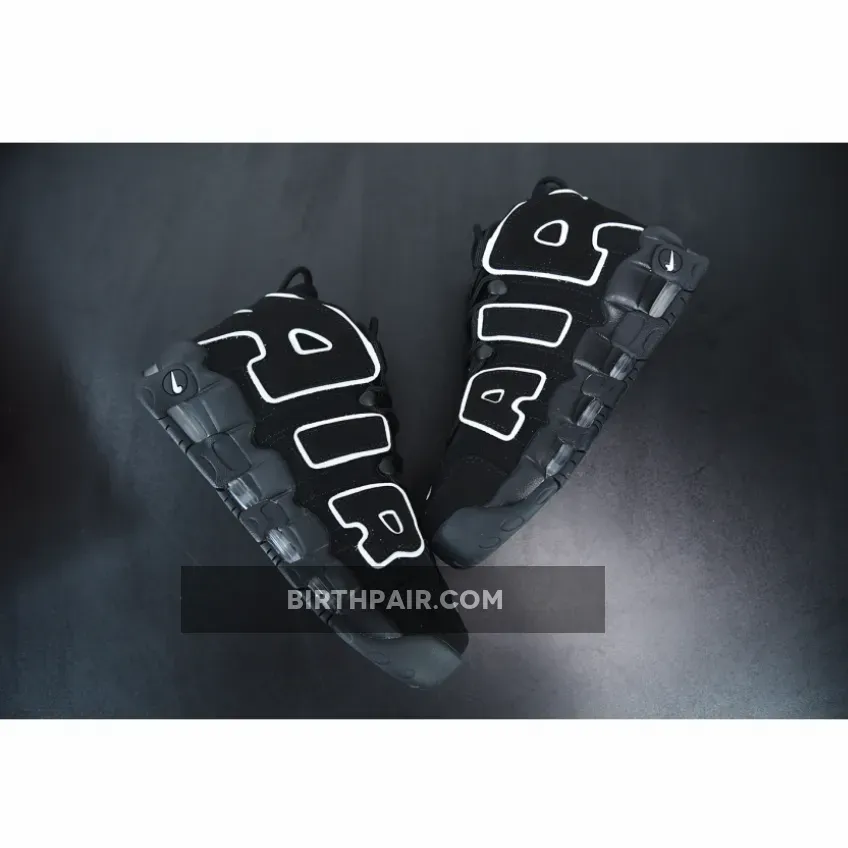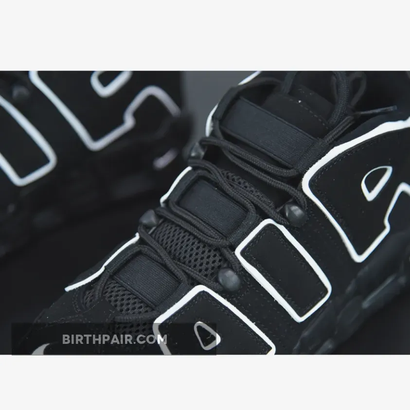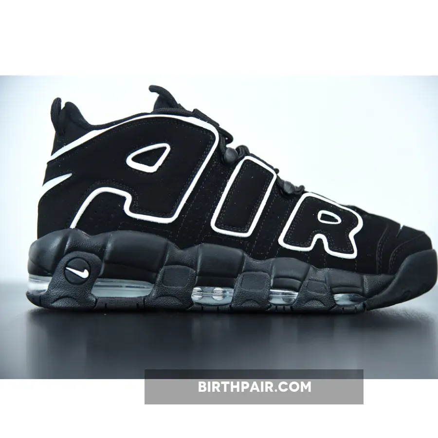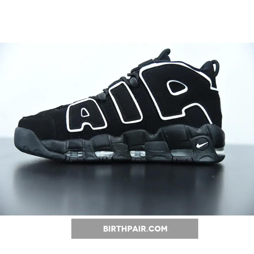 Dressed in the original Black and White color scheme. This Nike Air More Uptempo features a Black nubuck upper with its signature large “AIR” outlined in White across the panels.