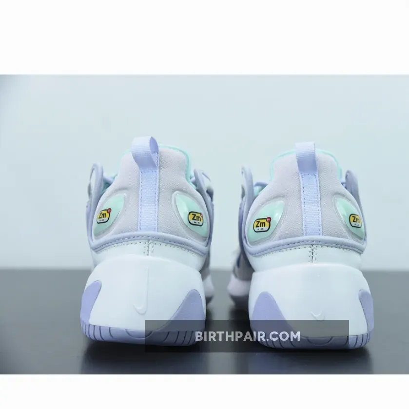 Mimicking the look of early 2000s sneakers, the Nike Wmns Zoom 2K ‘Oxygen Purple’ blends a retro style with contemporary design. Leather and synthetic overlays construct the upper, secured with a textile tongue and webbed lacing system. An exaggerated heel and branding are nods to the 2000s era.