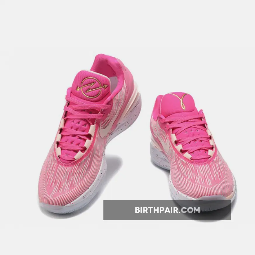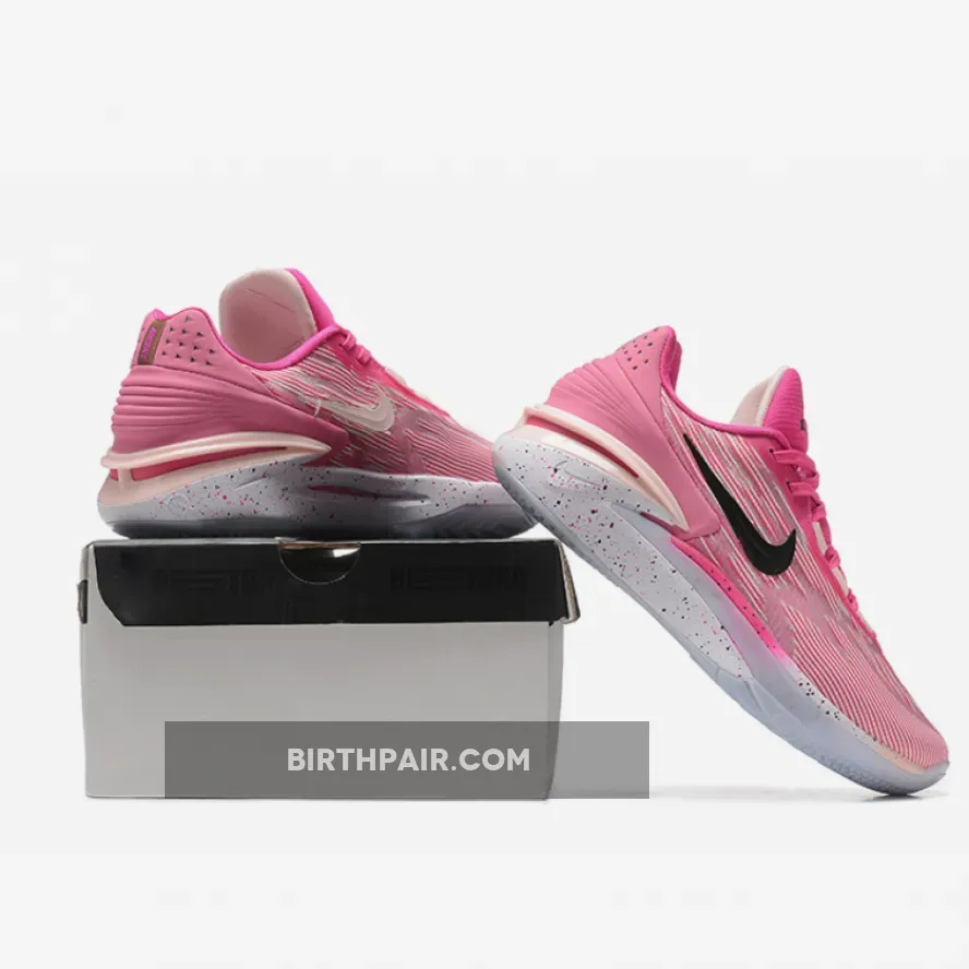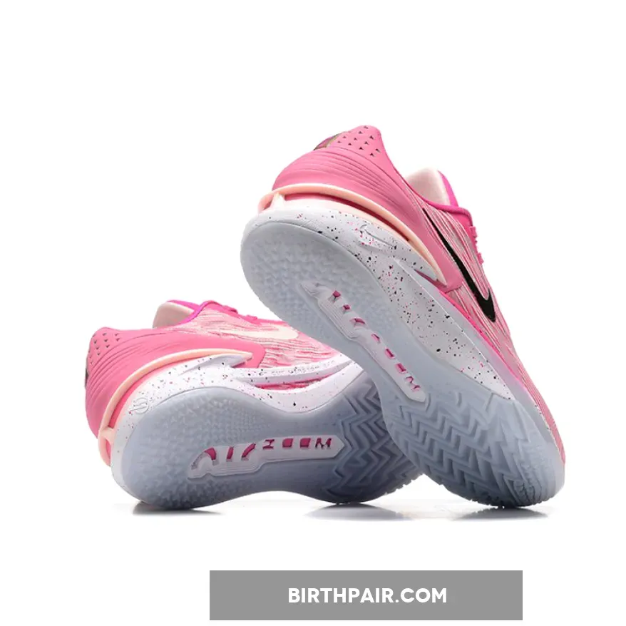 This Colorway consists of a primarily Punk upper with white hints along the upper as well, a black Nike swoosh on the lateral side and a white Nike swoosh on the medial side, it also has a white midsole with Pink splattering, and a white outsole. It also comes with a Hang Tag on the laces saying “When Life Kicks You, Let It Kick You Forward.” The Nike GT Cut 2 cushioning is made up of Nike React foam, Air Zoom Strobel, and extra Nike Air Zoom.