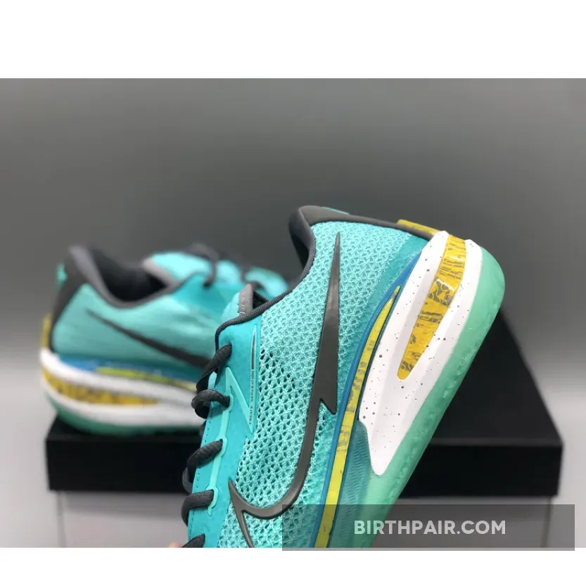 This upcoming colorway of the GT Cut is a clear nod to Ionescu’s allegiance to the New York Liberty, the WNBA squad that drafted her first overall in the 2020 WNBA Draft. The seafoam green colorways is a direct tie to the Liberty uniforms, which are obviously inspired by the Statue Of Liberty that sits on Ellis Island off the southern tip of Manhattan. Hits of neon green are marbled into the midsole, while a dark grey accent package colors in the Swoosh, laces, interior lining, and heel.