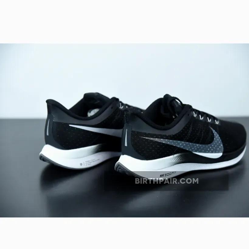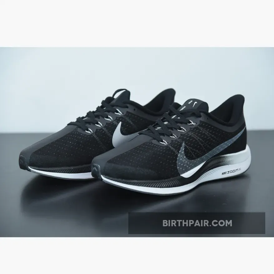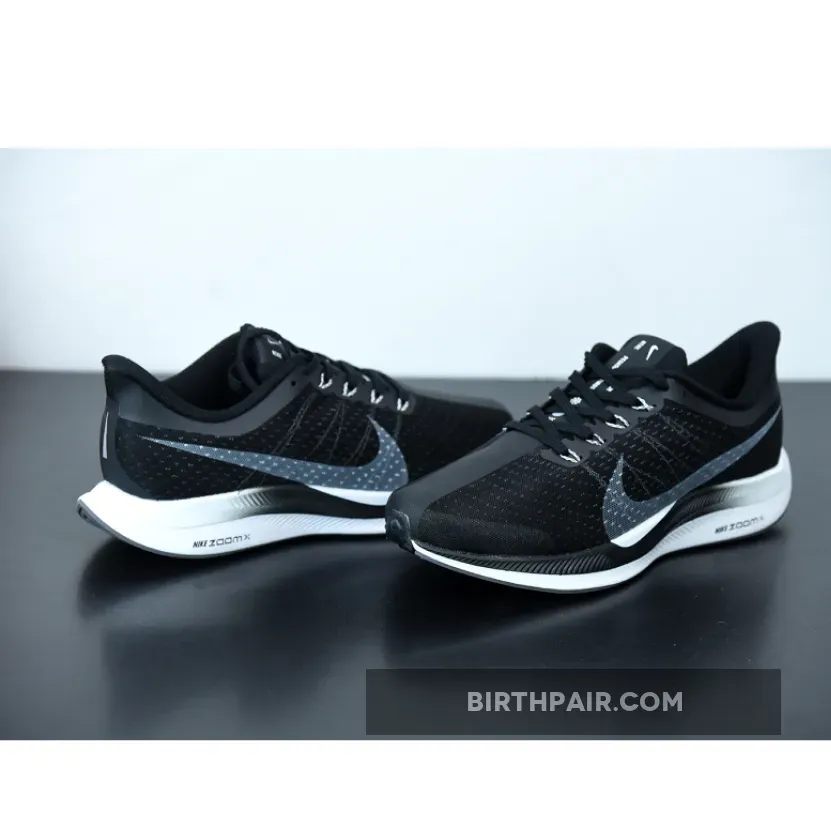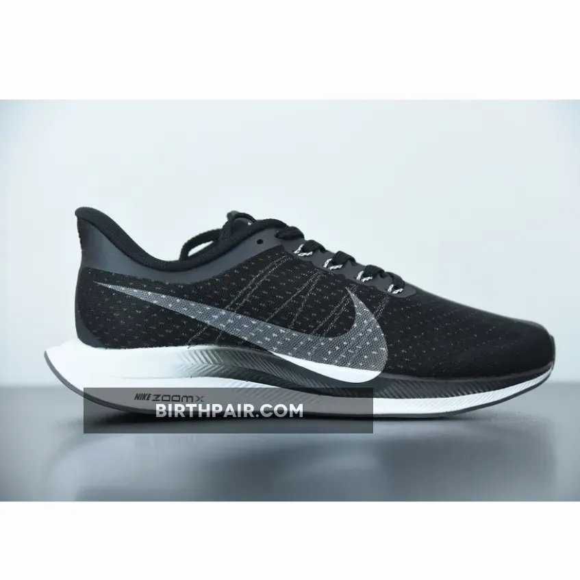 Dressed in a Black, Vast Grey, Oil Grey, and Gunsmoke color scheme. This Nike Zoom Pegasus Turbo features a full Black mesh upper with Grey covering the Flywire and Nike Swoosh logo. The shoe itself is inspired by the dominant Nike Zoom Vaporfly Elite and 4% marathon shoes.
