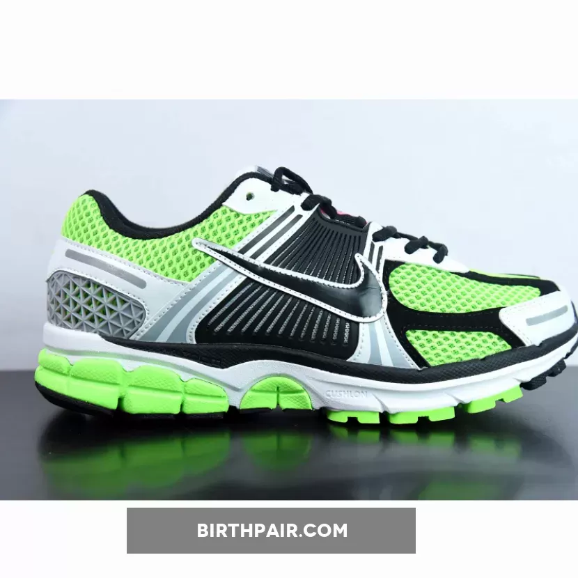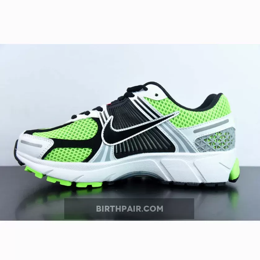 A premium combination of stability and comfort, Nike brought back one of their classic 2000s runners for the Air Zoom Vomero 5 SE SP ‘Electric Green’ sneaker. Released in April 2019, the shoe is equipped with mesh, TecTuff leather overlays and a heel counter, a nod to the original. The shoe is decorated with 3M accents and a Nike Swoosh plus a contrasting strip on the tongue. A plush Cushlon midsole and Zoom Air complete the design.