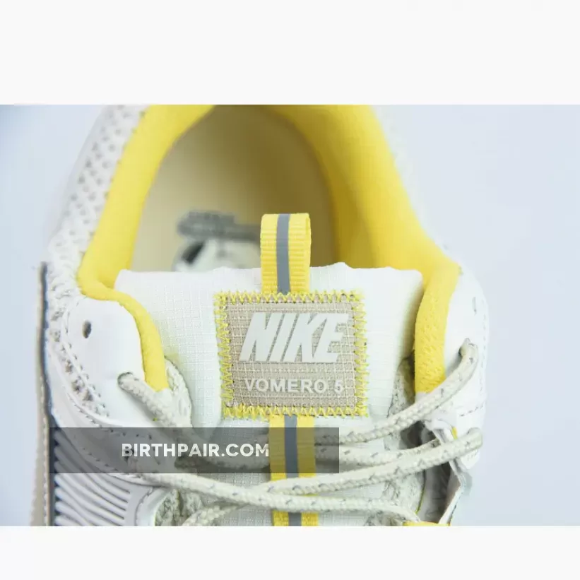 “I’m thoroughly impressed with my new Nike Zoom Vomero 5’s! The Light Bone/ Yellow colorway is a fresh twist and the breathable mesh upper keeps my feet cool during runs. Cushioning is top-notch – Zoom Air tech absorbs impact nicely. Comfortable fit, too. Overall, I’d highly recommend this shoe for both performance & style.”