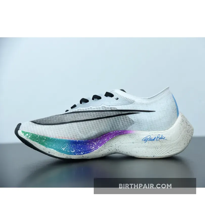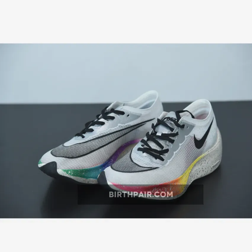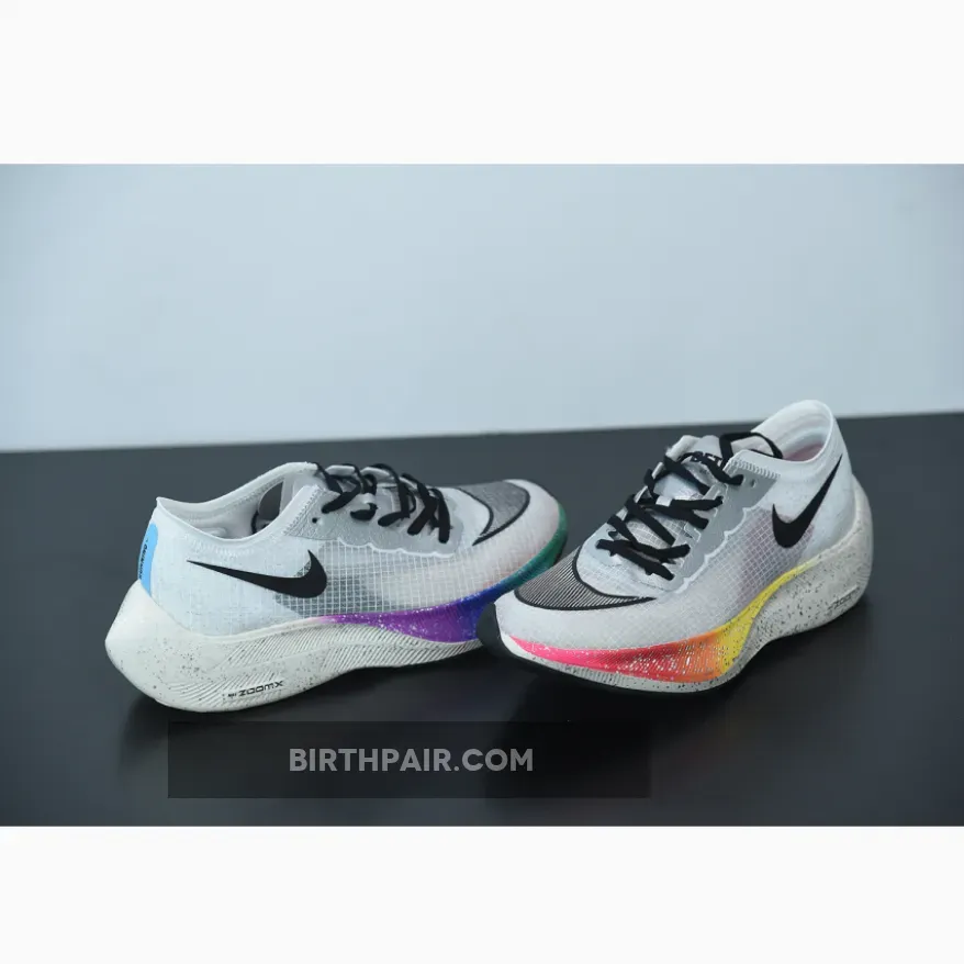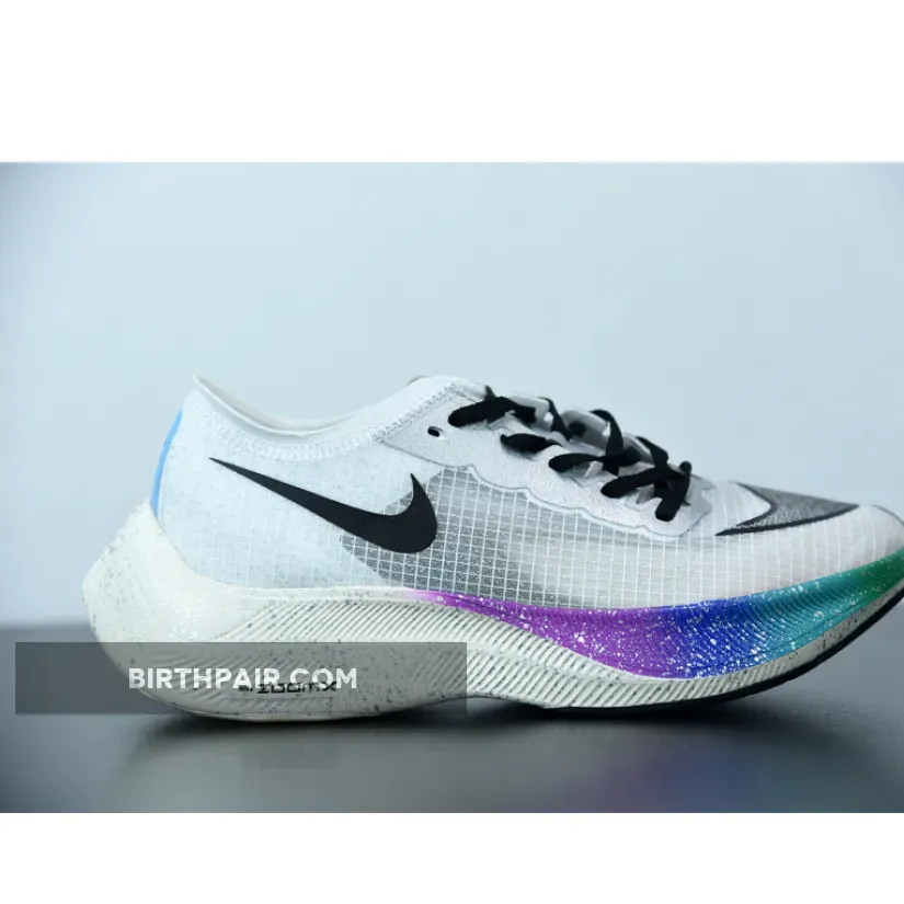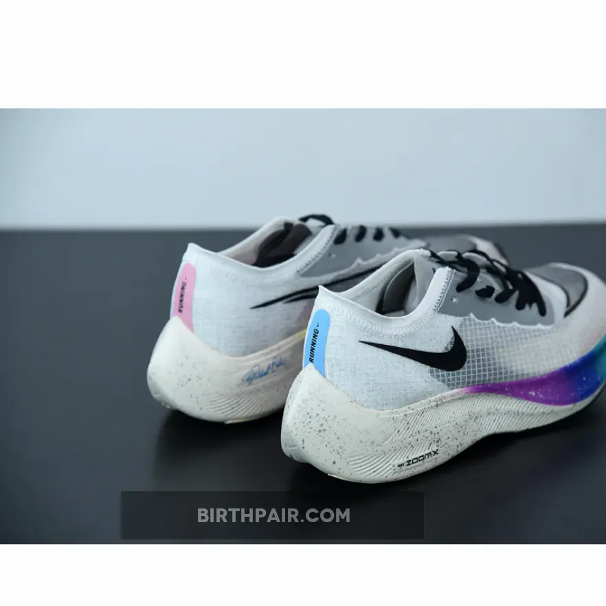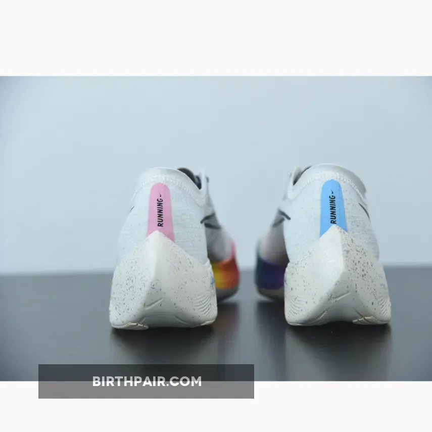 the pair evokes performance in spades with a kit that lends itself to the overall experience. Constructed from a fabric lighter than Flyknit with lesser water absorption, the VaporWeave fabrications are not without their lifestyle touches as they forgo the initial Volt colorways for one of slight pink tones in the midst of a mostly white exterior. Black contrast swooshes and laces emblazon across both the lateral and medial while midsoles gradate asymmetrically with the left foot favoring warm tones and right favoring cool.