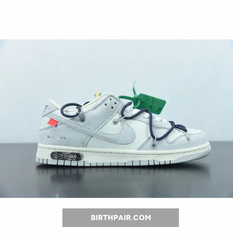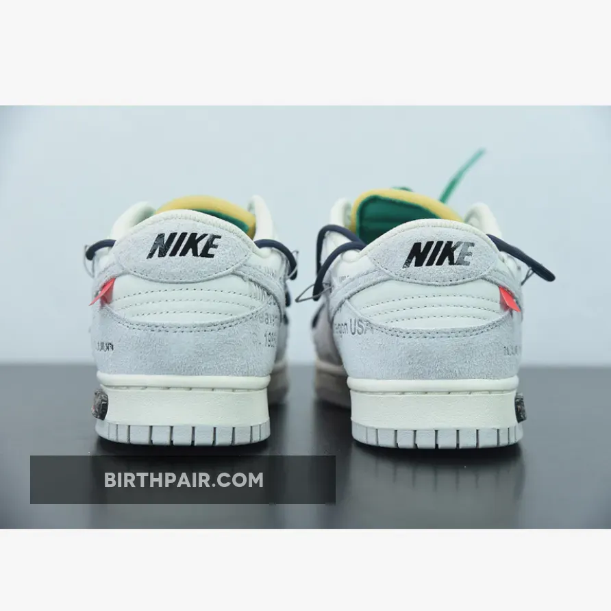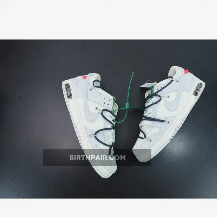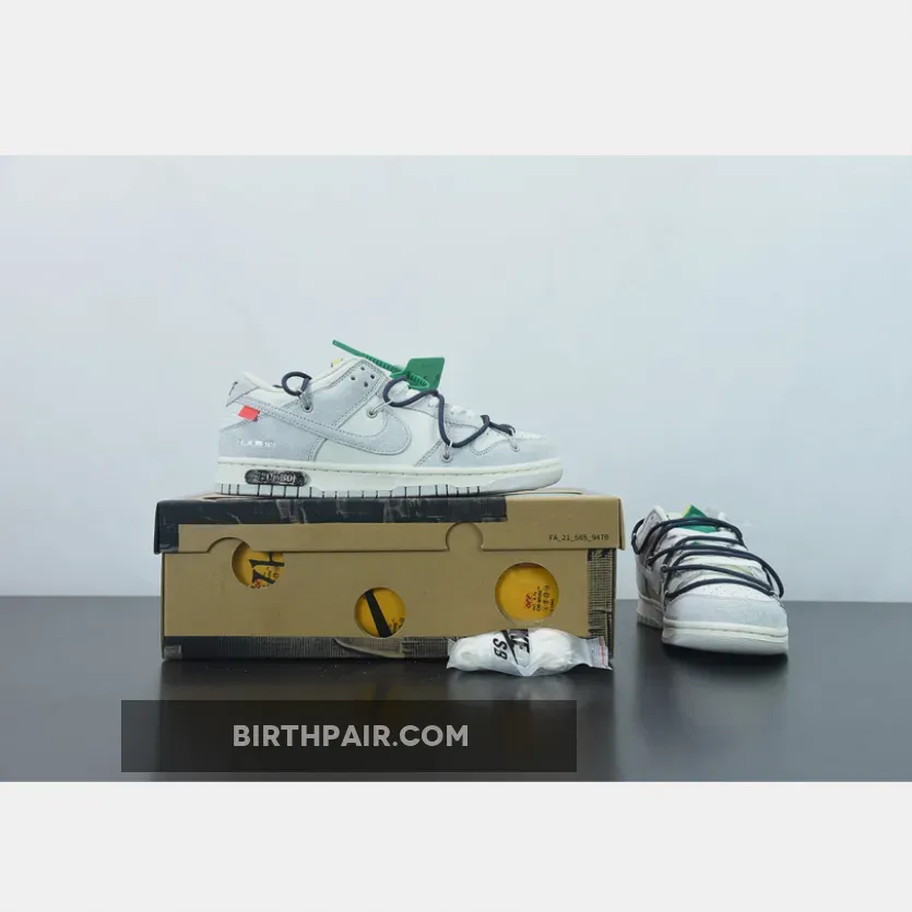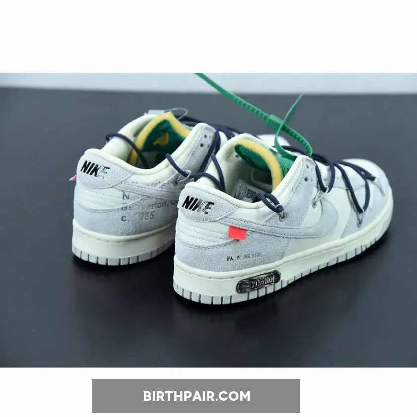 The upper of the Off-White Nike Dunk Low Lot 20 is made out of premium leather in Sail, while the overlay is made with high-quality translucent TPU material. The sneaker also features a midsole design that incorporates a Neutral Grey rubber sole. The midsole also has Nikes signature Air unit in the heel, providing support and enhanced cushioning during wear and exercising.