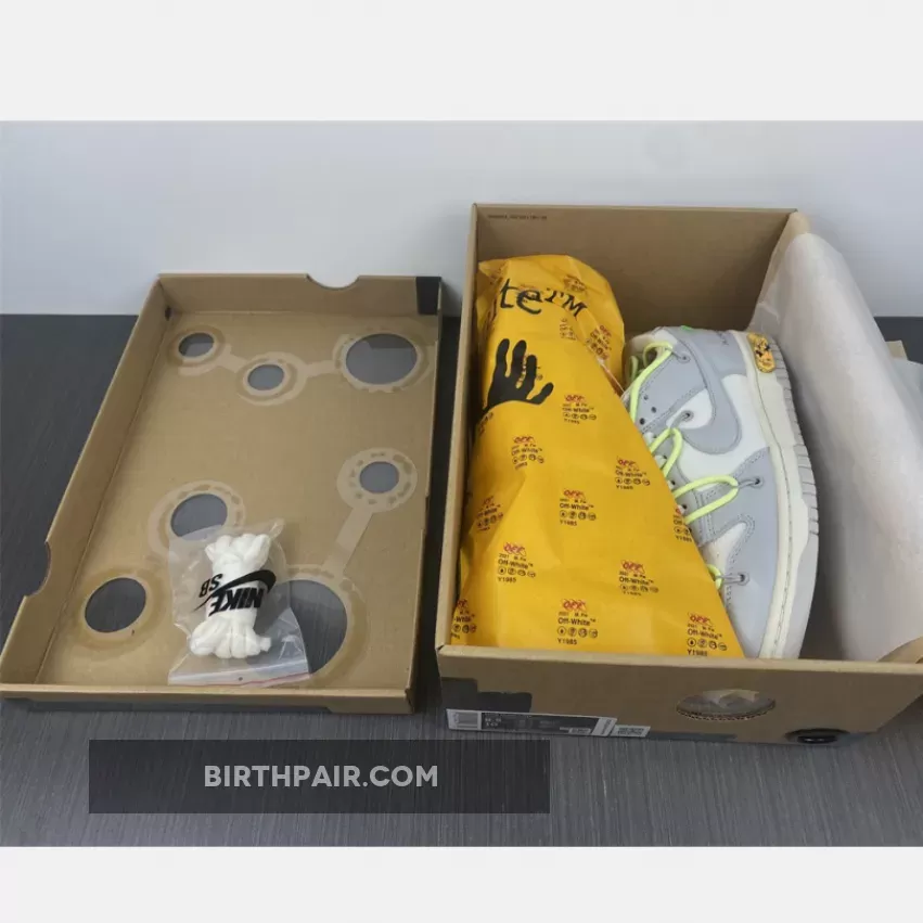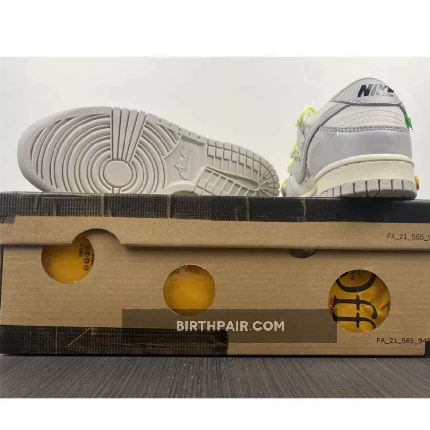 #50 interpolates familiar details and colors from Abloh’s past Nike collaborations with some fresh new details. It’s done up in black and equipped with a metallic silver Swoosh a la the Off-White™ x Nike Air Force 1 “MoMA” from 2018, while also adding the overlaid rope lacing system from past Off-White™ x Nike Dunk Low collaborations and cut-out oval detailing on the tongue that’s borrowed from the Off-White™ x Air Jordan 5.