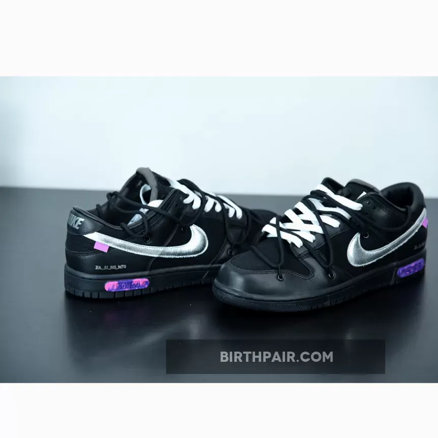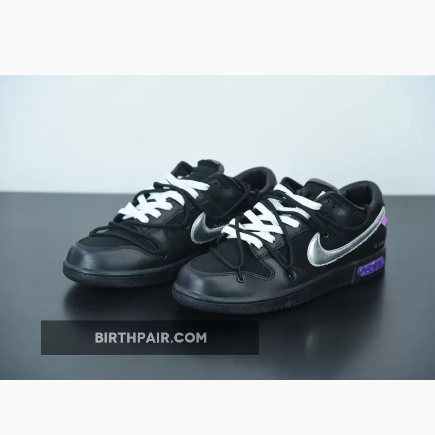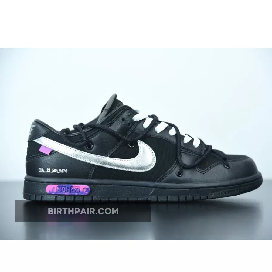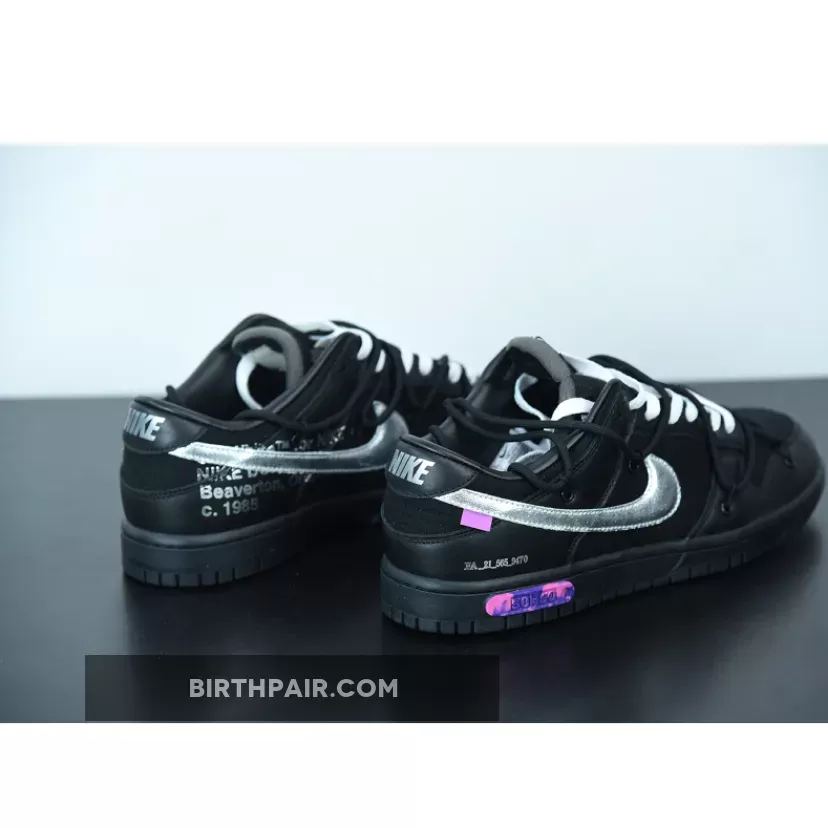#50 interpolates familiar details and colors from Abloh’s past Nike collaborations with some fresh new details. It’s done up in black and equipped with a metallic silver Swoosh a la the Off-White™ x Nike Air Force 1 “MoMA” from 2018, while also adding the overlaid rope lacing system from past Off-White™ x Nike Dunk Low collaborations and cut-out oval detailing on the tongue that’s borrowed from the Off-White™ x Air Jordan 5.