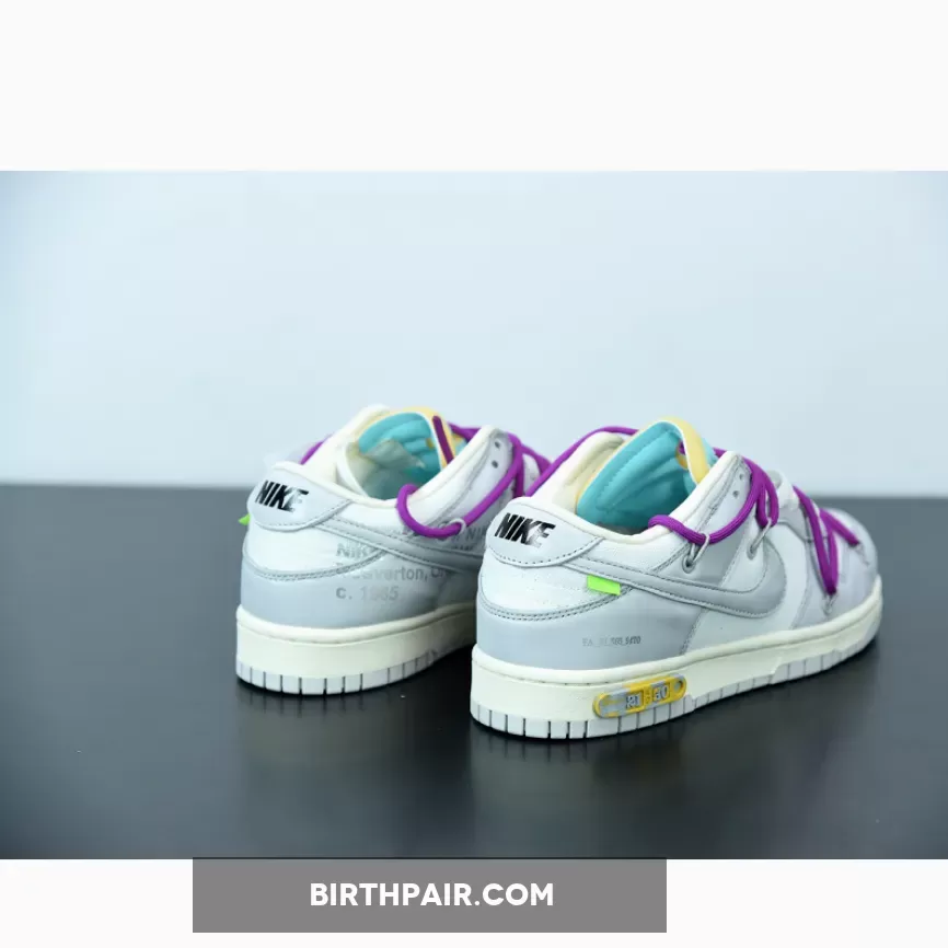 #50 interpolates familiar details and colors from Abloh’s past Nike collaborations with some fresh new details. It’s done up in black and equipped with a metallic silver Swoosh a la the Off-White™ x Nike Air Force 1 “MoMA” from 2018, while also adding the overlaid rope lacing system from past Off-White™ x Nike Dunk Low collaborations and cut-out oval detailing on the tongue that’s borrowed from the Off-White™ x Air Jordan 5.