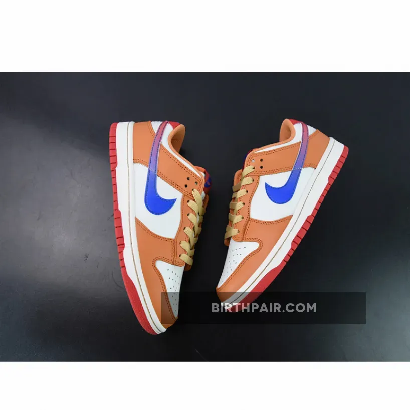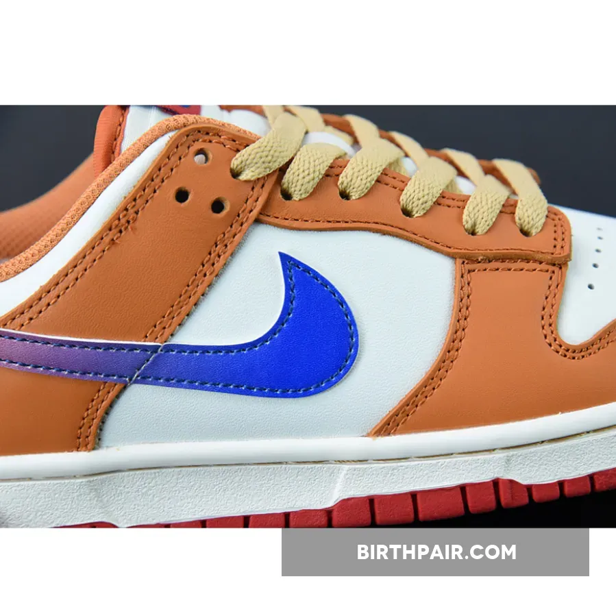 “I’m really impressed with my new Nike Dunk Low Sail/University Red-Hot Curry-Game Royal ?! The gradient Swooshes add a nice touch and the Hot Curry color pops against the Sail base ?. Perfect for casual wear or gaming sessions ?” – Alex ?