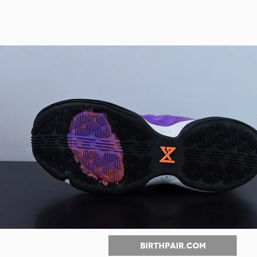 This bright Nike PG 1 comes dressed in a Bright Violet, Black, White and Total Orange color combination. Looking closer you can see Purple suede and mesh runs across the base while Black lands on the Nike Swoosh, tongue and collar.